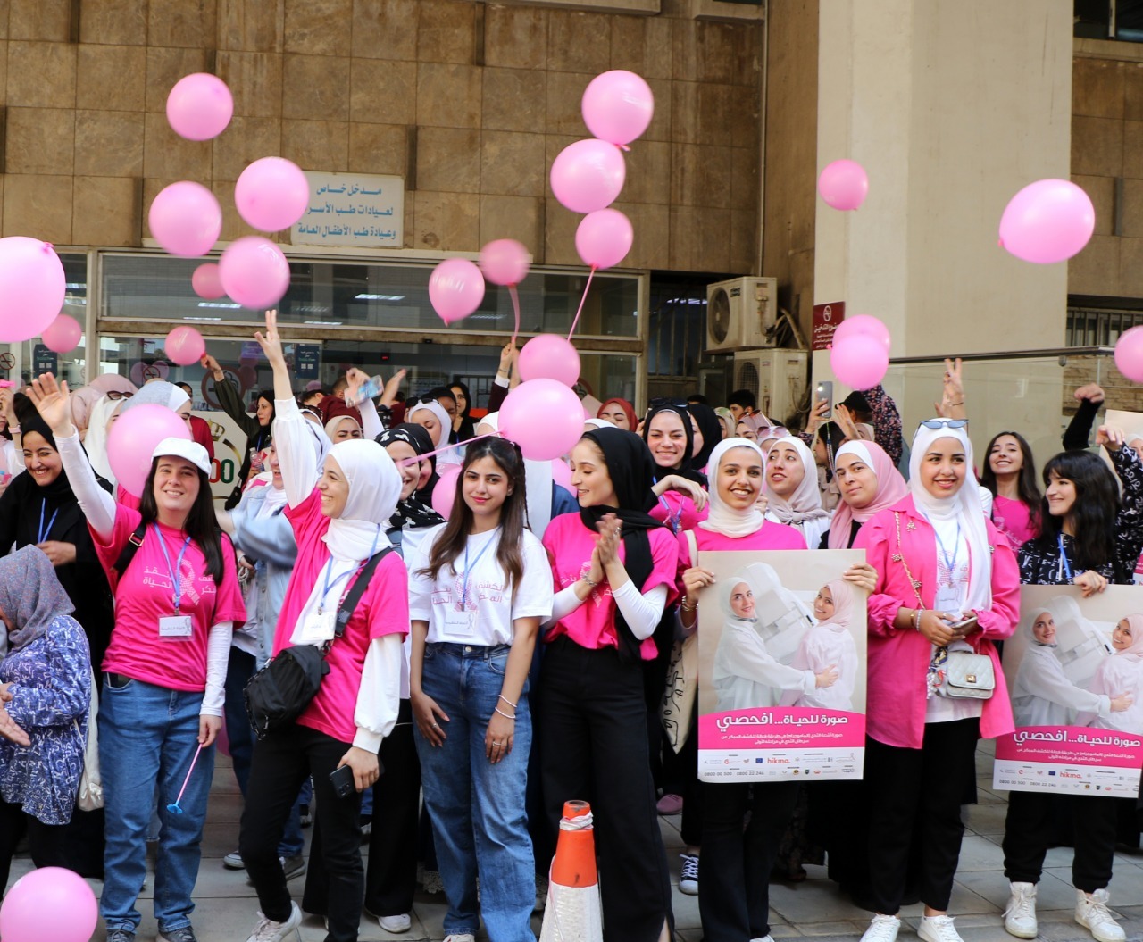 يُذكر، أن مجموعة من الطلبة المتطوعين قاموا بعمل مسيرة داخل المستشفى باللباس الوردي حاملين البالونات الوردية، لتشجيع السيدات على إجراء الفحص المبكر عن سرطان الثدي.