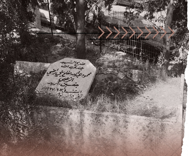 وضعوا على قبر الشهيد بندقيته التي اختفت لانها سلاح قد يستخدمه البعض ، ووضعوا خوذته ، ووضعوا نصيبة قبر كتبوا اسمه وبلدته عليها ، لكن حاولنا جاهدين معرفة اسم الشهيد ولكن دون جدوى لان النصيبة كانت محطمة تماما ، وفقط استطعنا تمييز كلمة الزعبي كاسم لعشيرته .