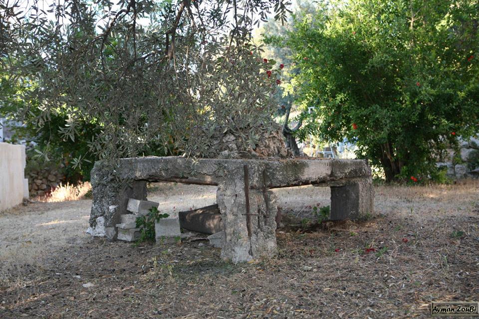 " الشهيد الجندي الأول محمود عبدالله مفلح بني راضي الزعبي ... جفين - اربد " والنصيبة كما هي في حديقة ال نسيبة مع ازاحتها عن مكانها في مقدمة القبر .