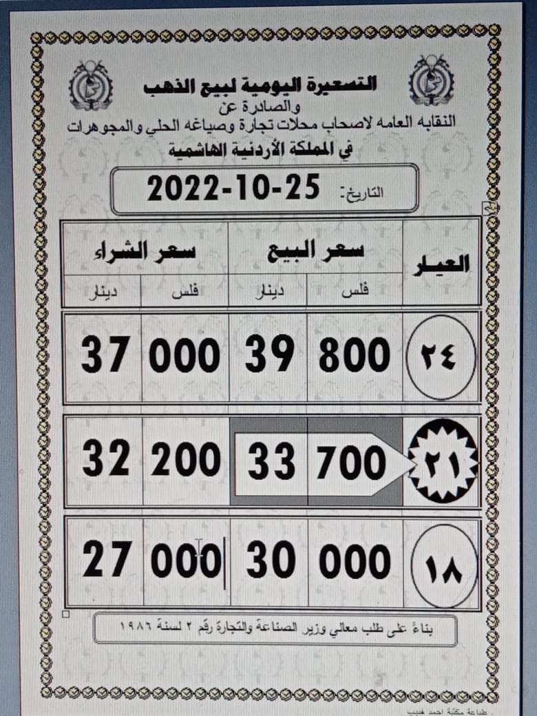 انخفاض أسعار الذهب محليا 30 قرشا في التسعيرة الثانية25-10-2022 01:17 PM