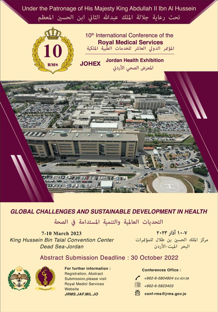 عمون - أعلنت اللجنة العلمية للمؤتمر الدولي العاشر والمعرض الصحي الأردني للخدمات الطبية الملكية، الأحد، تمديد فترة استقبال المشاركات العلمية (الأوراق العلمية) لغاية 6 تشرين الثاني المقبل. |