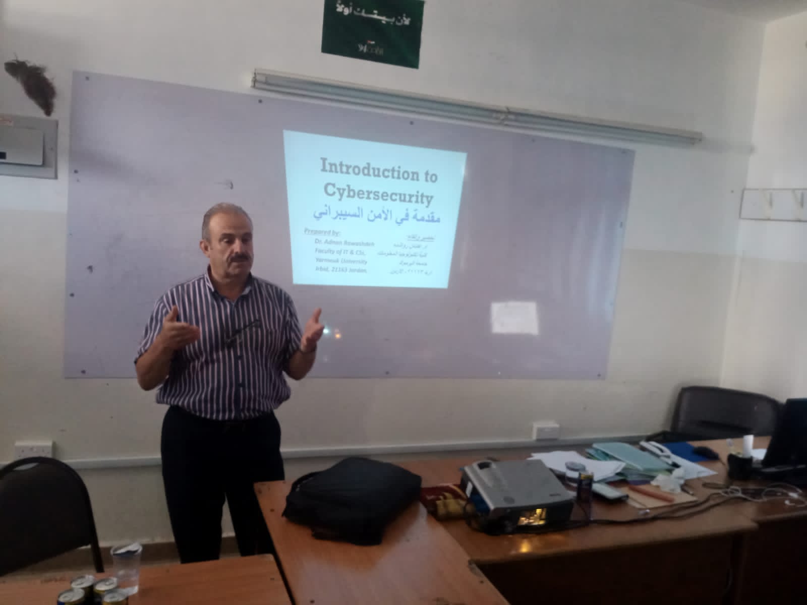 وفي مستهل محاضرته، شرح المهندس الرواشدة، عدة تعريفات لمصطلح "الأمن السيبراني" موضحًا أن هذا المصطلح يشير إلى ممارسة حماية الأنظمة والشبكات والبرامج من الهجمات الرقمية التي تهدف عادة إلى الوصول إلى المعلومات الحسّاسة وتغييرها أو إتلافها، متناولًا في هذا السياق عددًا من المصطلحات "السيبرانية" الأخرى مثل الفضاء والهجوم السيبراني، والخوادم.