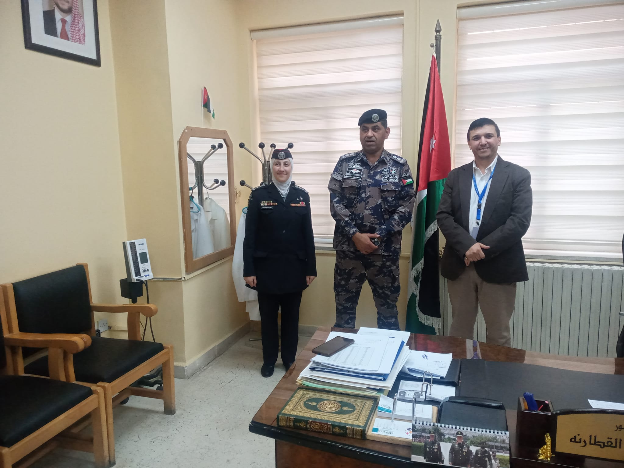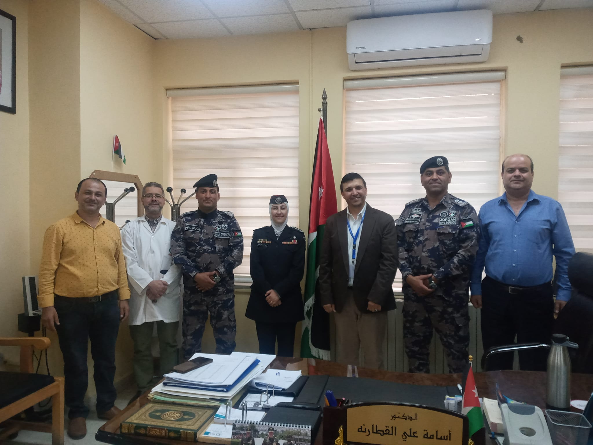 عمون - استقبل مدير مستشفى الدكتور جميل التوتنجي، الدكتور أسامة القطارنة فريق من الدفاع المدني. |