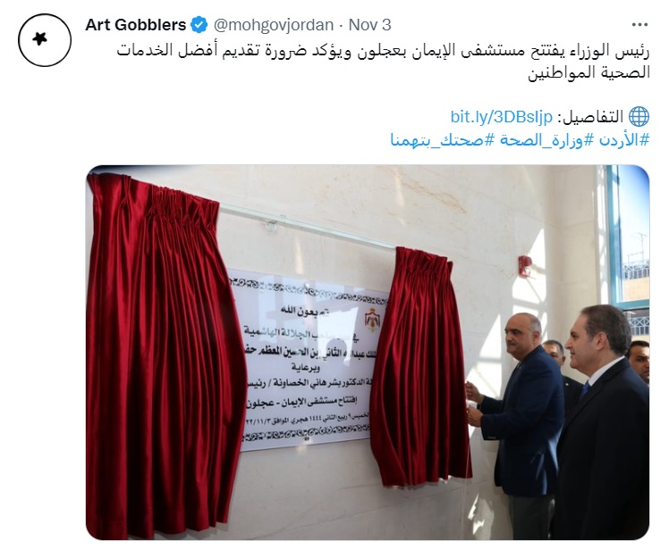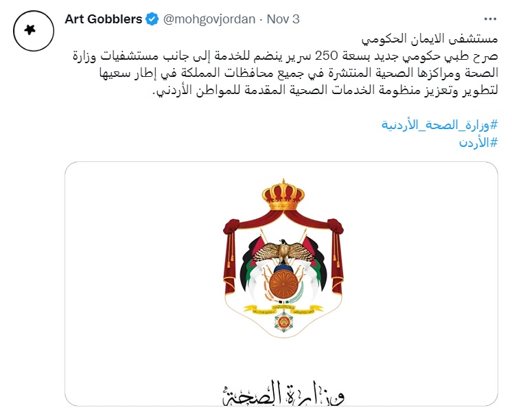 عمون - تعرضت صفحة وزارة الصحة الأردنية على منصة تويتر، الى عملية اختراق من جهة تبدو مجهولة المصدر، تحمل اسم "Art Gobblers" وهي موثقة بالعلامة الزرقاء.
