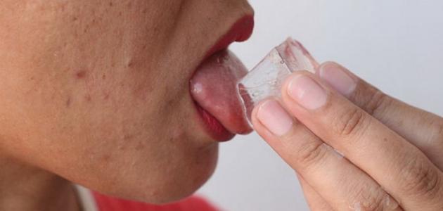 3. التهدئة بالثلج: يمكنك وضع قطعة صغيرة من الثلج على اللسان المحروق لتخفيف الألم والالتهاب.