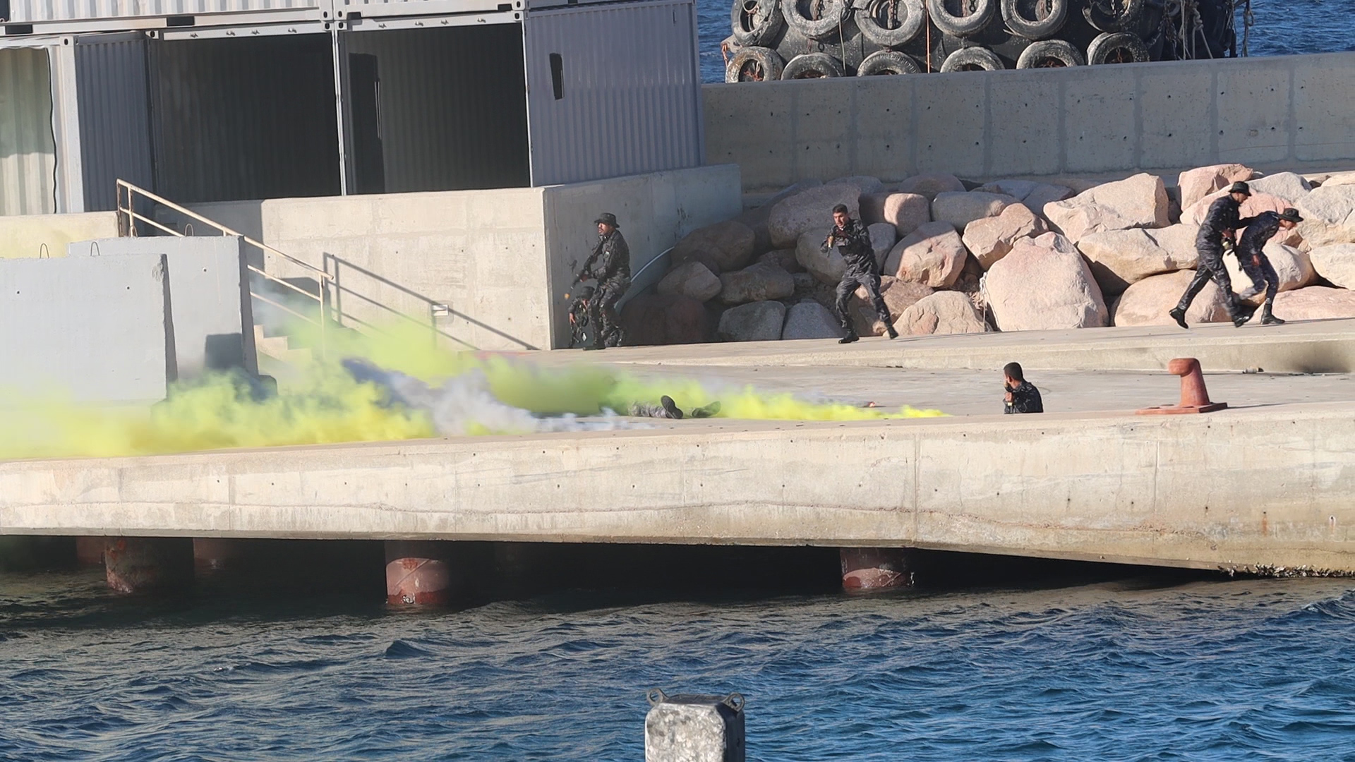 وشاهد الحضور فعاليات تضمنت عمليات إنزال للضفادع البشرية والغطس العملياتي والاقتحام وتفتيش السفن، وتحرير الرهائن وإخلاء المصابين بواسطة نقالة طبية معدة لمثل هذه الحالات، وأظهر المشاركون مستوى متميزاً وكفاءة واحترافية عالية.