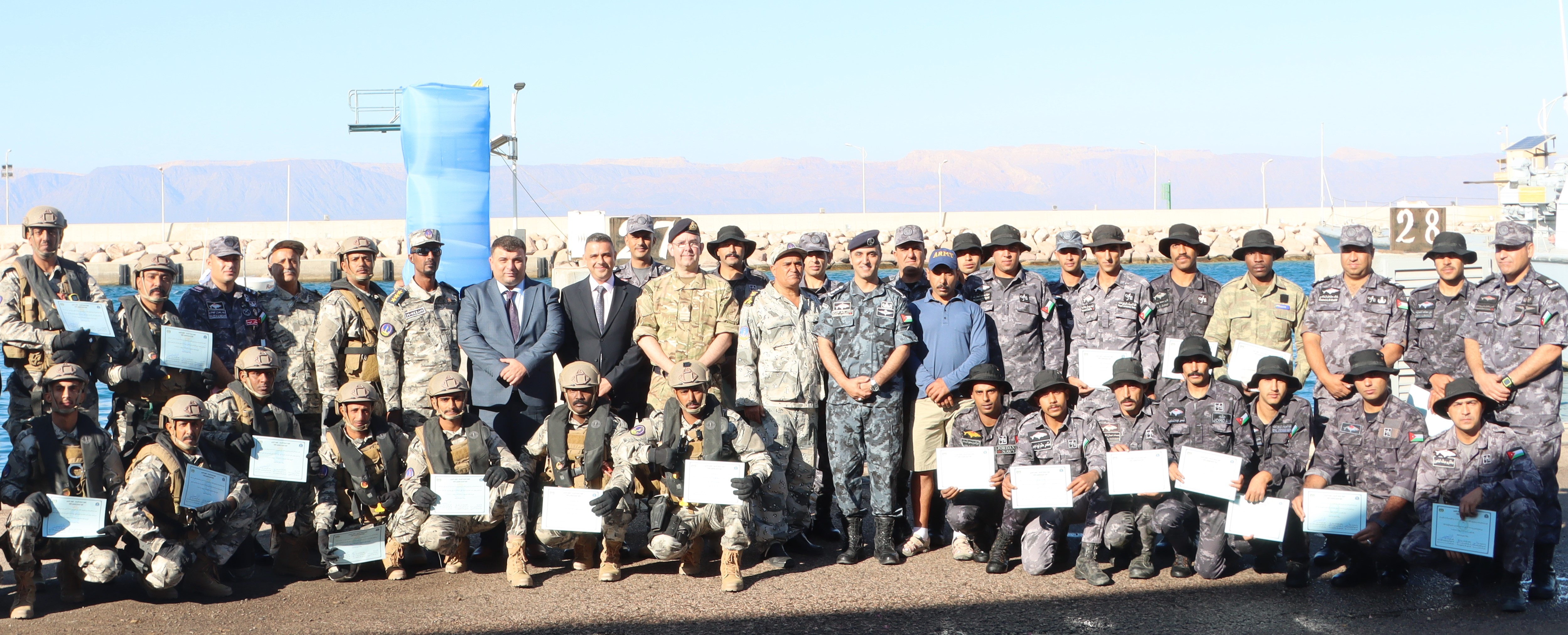 عمون - اختتمت في قيادة القوة البحرية والزوارق الملكية اليوم الخميس، دورة اقتحام وتفتيش السفن الخاصة بمرتبات خفر السواحل من جمهورية اليمن، ودورة الضفادع البشرية التي شارك فيها عدد من ضباط وضباط صف وأفراد القوات المسلحة الأردنية والأجهزة الأمنية وعدد من مرتبات سلاح البحرية من دولة جزر القمر، بحضور مساعد قائد خفر السواحل اليمنية العميد الركن أحمد عباس وقائد القوة البحرية والزوارق الملكية العقيد الركن هشام الجراح وعدد من ممثلي منظمة الأمم المتحدة لمكافحة الجريمة والمخدرات (UNOD).
