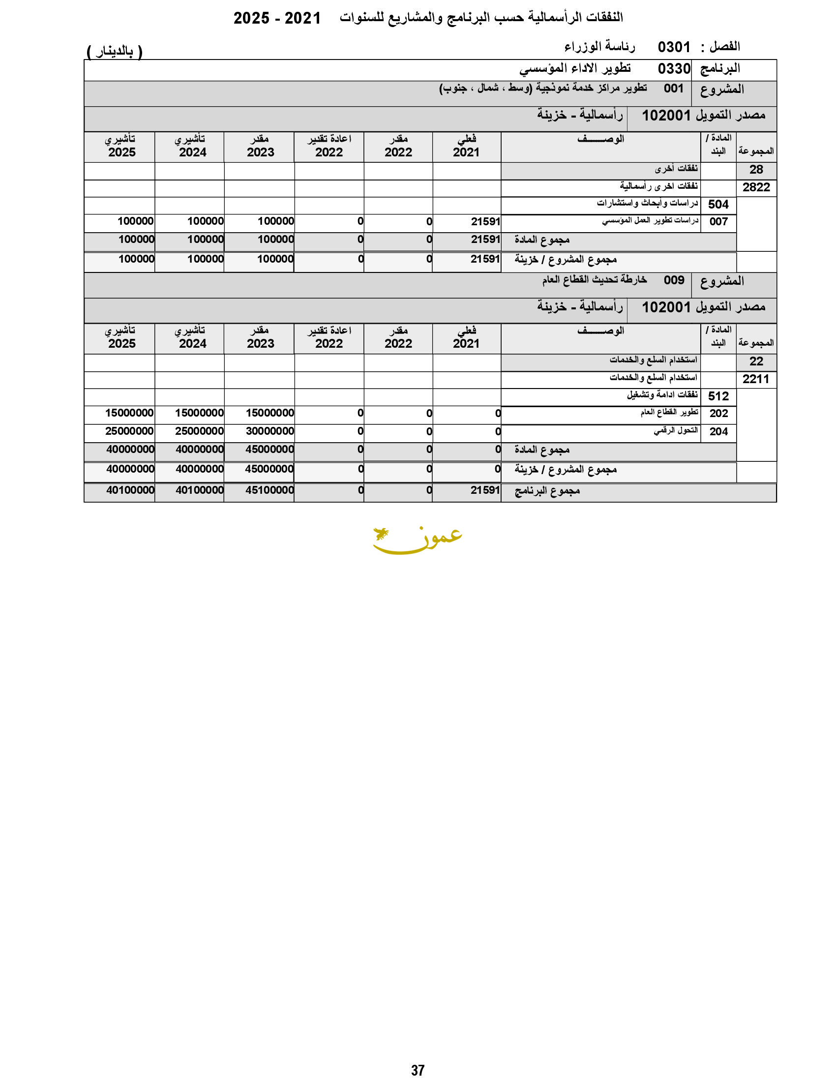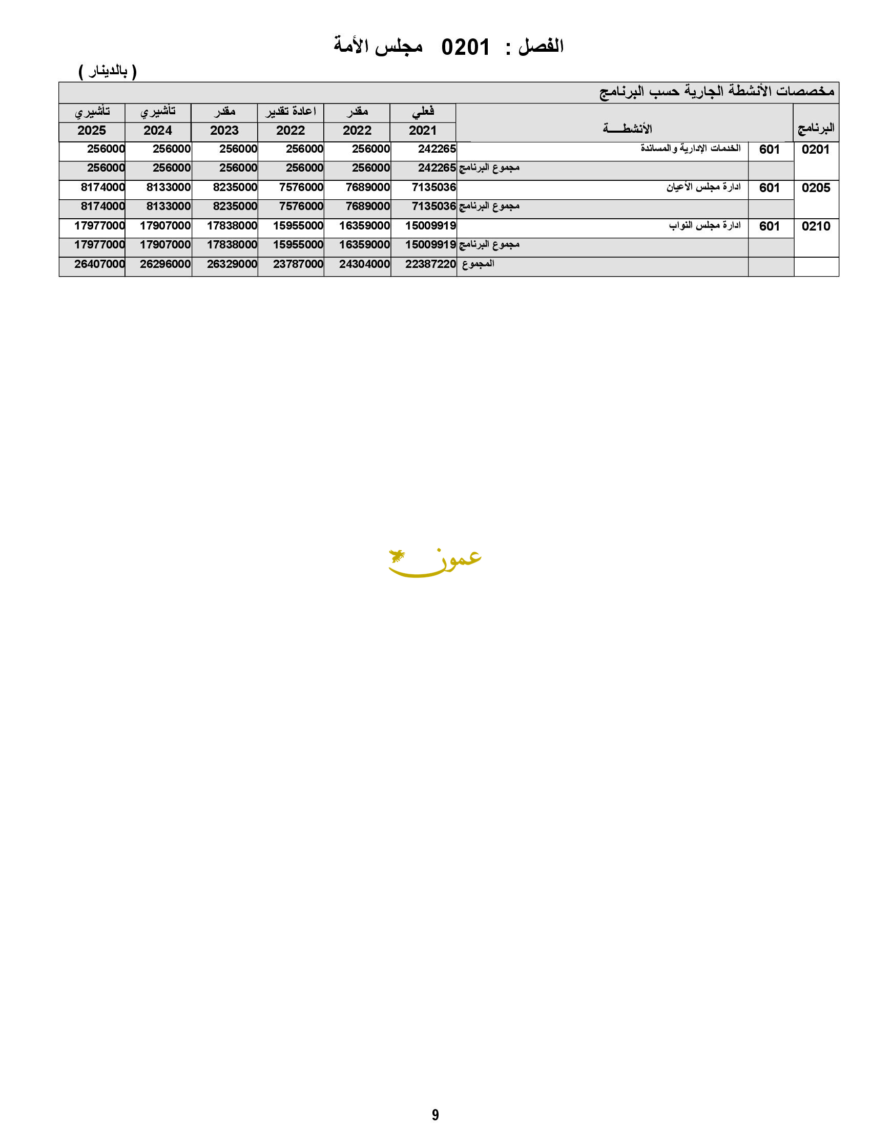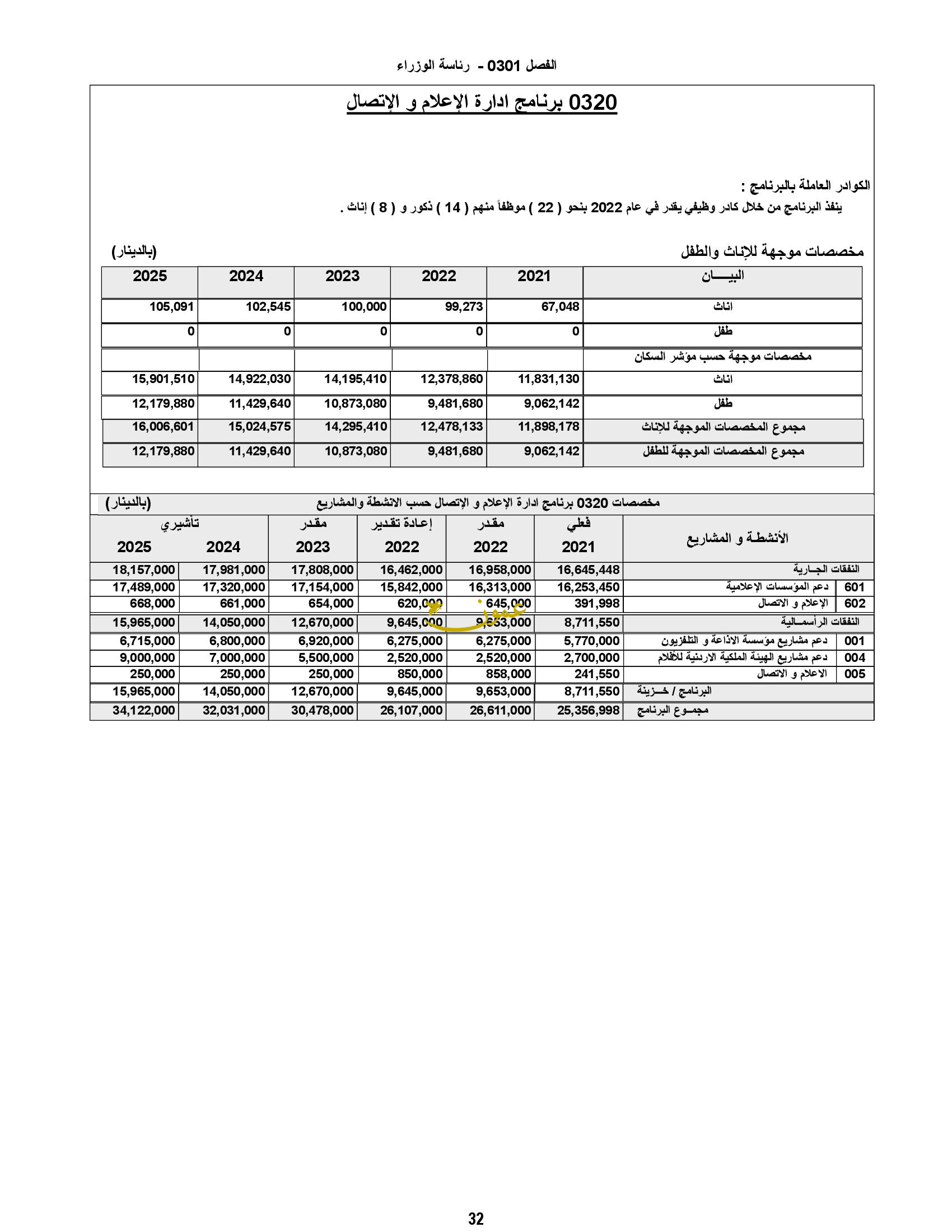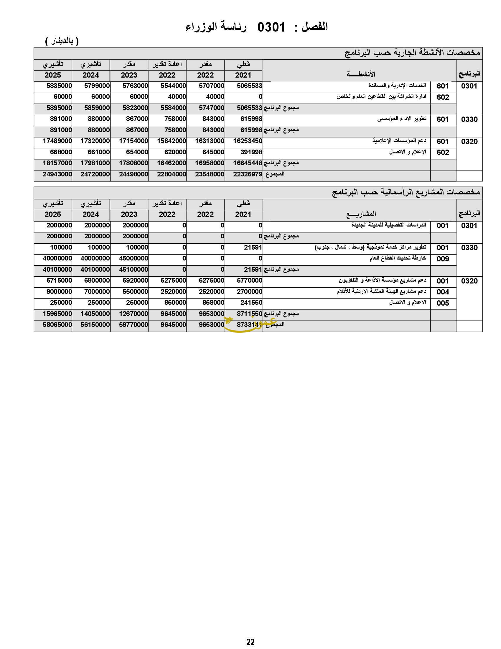 وأظهرت الأرقام أن الرئاسة ستدعم مشاريع مؤسسة الإذاعة والتلفزيون بقيمة 9.6 مليون دينار.