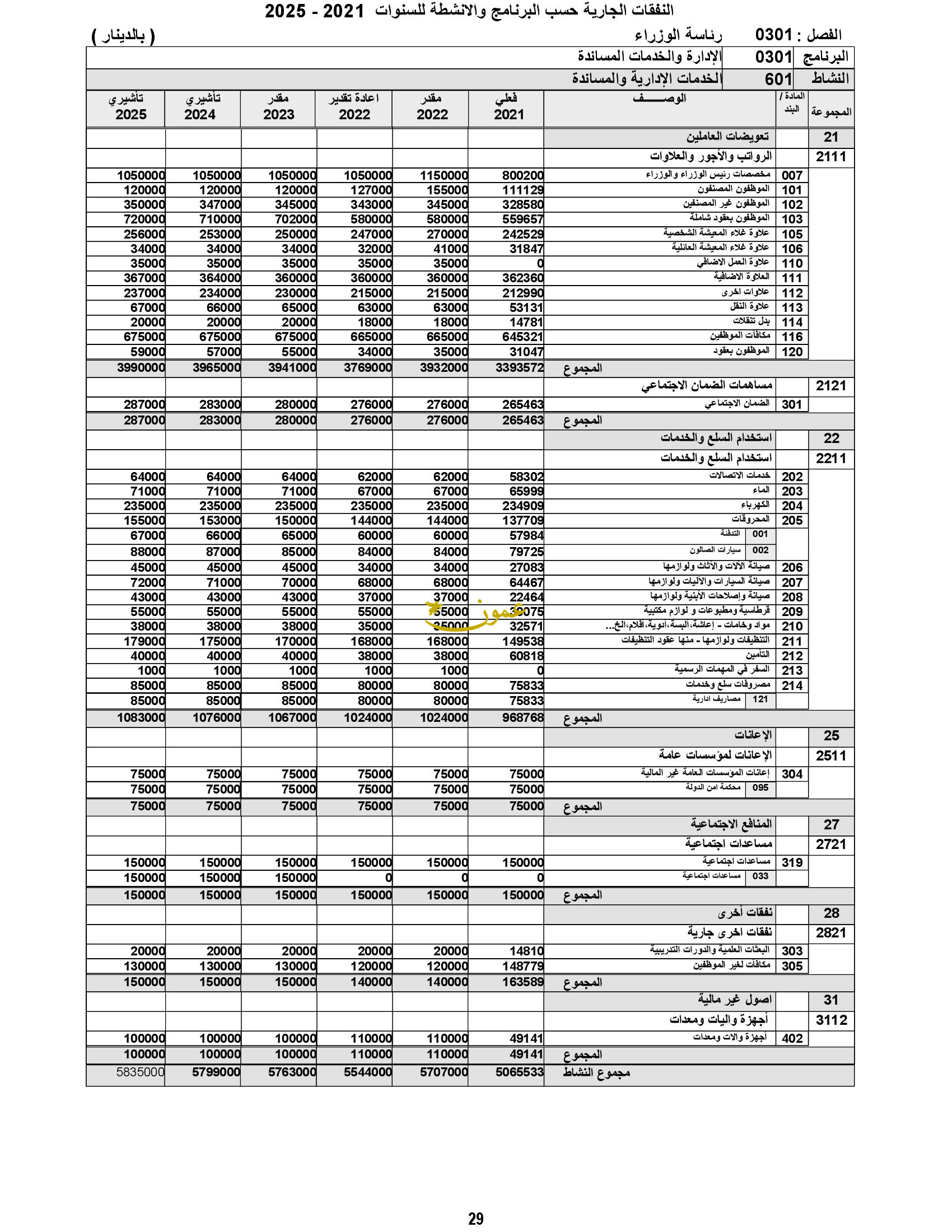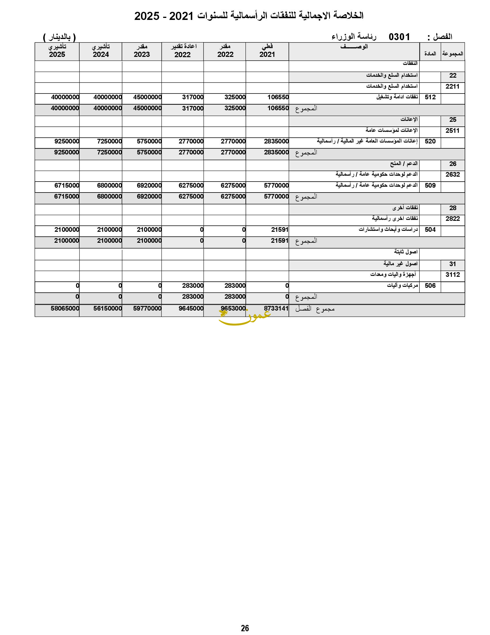 وفي سياق متصل، أظهر مشروع الموازنة العامة أن موازنة رئاسة الوزراء تبلغ 84 مليون دينار، بعدما كانت 33 مليون دينار العام الجاري و32.4 مليون بعد تقدير موازنة هذا العام.