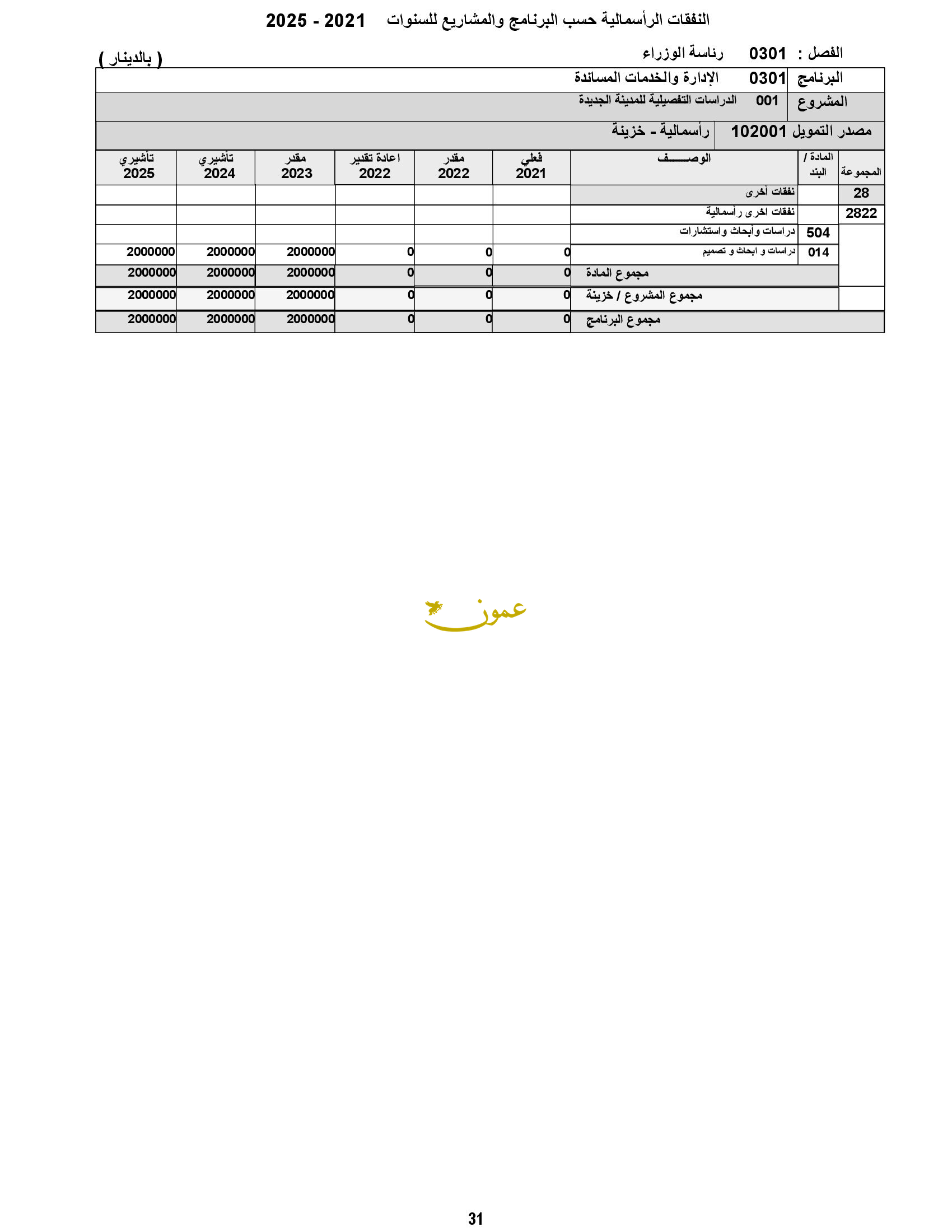 ** الحكومة تخصص 2 مليون دينار لإجراء دراسات حول المدينة الجديدة