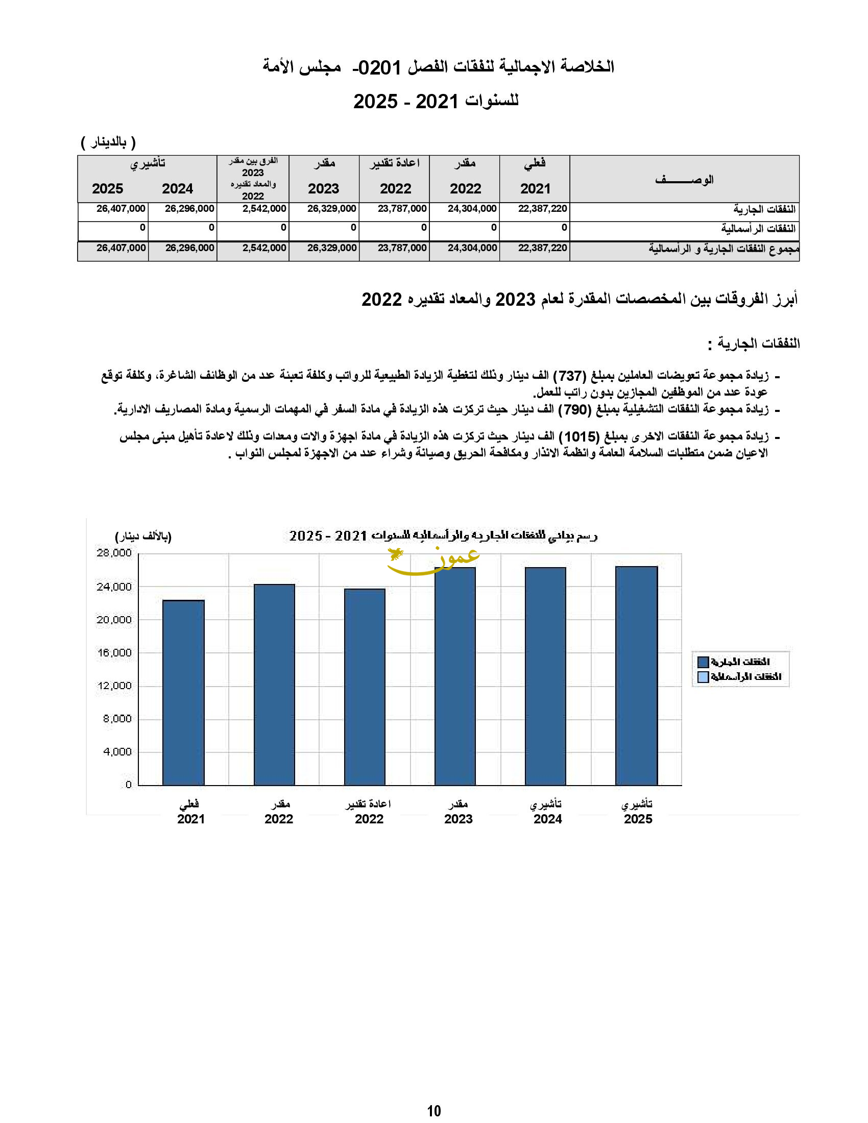 وقالت الأرقام، إنه تم زيادة مجموعة تعويضات العاملين بمبلغ 737 ألف دينار، وزيادة مجموعة النفقات التشغيلية بمبلغ 790 ألف دينار، و1015 ألف دينار نفقات أخرى.
