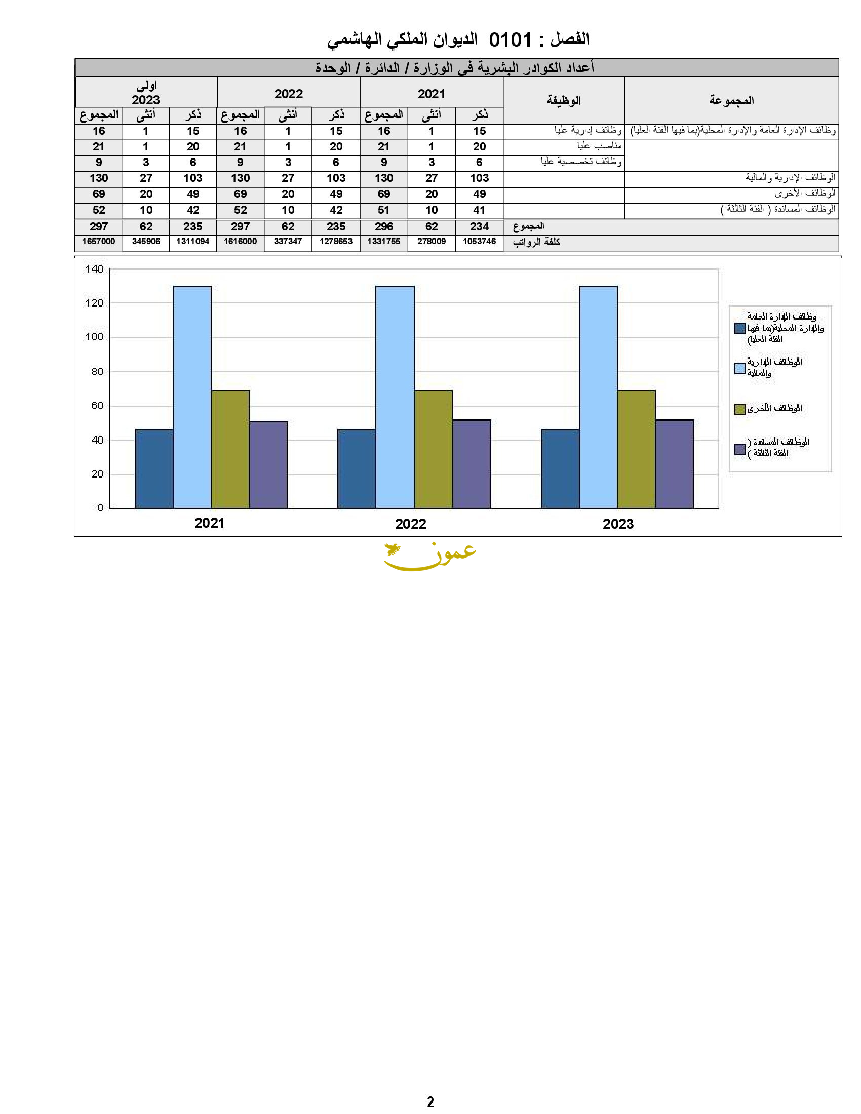 ولفتت الأرقام إلى أن عدد الموظفين في الديوان الملكي 297 موظفا خلال العام الجاري.