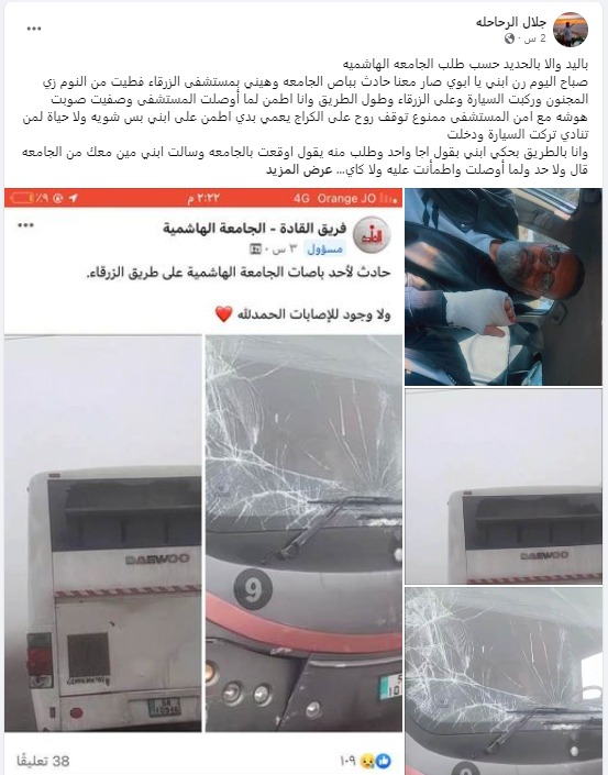 الرحاحلة يروي تفاصيل تعرض نجله لحادث سير بباص الجامعة الهاشمية