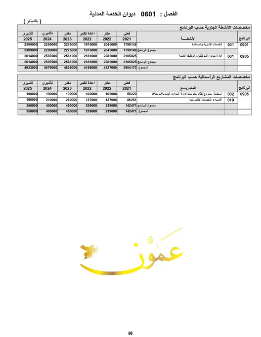 عمون - أظهر مشروع الموازنة لعام 2023، إن موازنة ديوان الخدمة المدنية تبلغ 5 مليون و286 الف دينار.