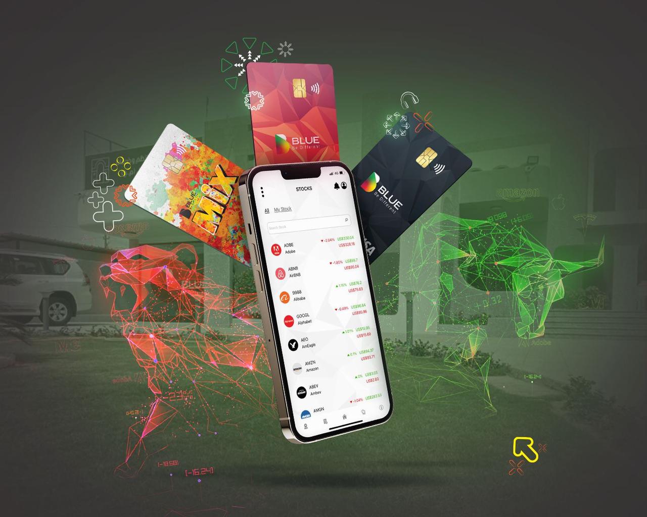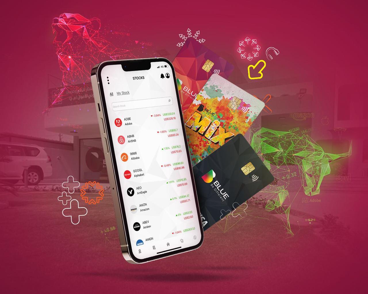 في كانون الأول 2022، أعلنت شركة بوابة عشتار (بلو باي) عن إطلاق أحدث تكنولوجيا مالية لديها والتي توفر لجميع مستخدميها القدرة على شراء وبيع الأسهم المدرجة في السوق المالي الأمريكي عن طريق تطبيق الهواتف الذكية الخاص بالشركة، والتي تمثل حل غير مسبوق مطور ومبني محلياً في العراق. هذه الخطوة تبعت خدمات تكنو-مالية كانت قد أطلقتها الشركة مثل بطاقة العملات المتعددة، هذه البطاقة التي فتحت آفاقاً واسعة من الفرص في السوق العراقي.