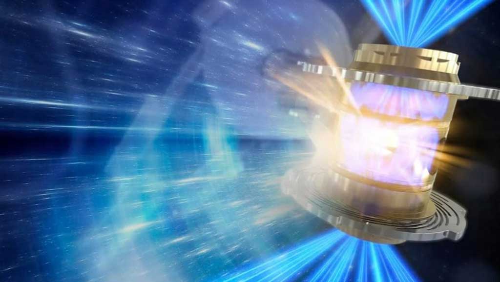 يستخدم الباحثون في مختبر لورانس ليفرمور الوطني منشأة الإشعال الوطنية الضخمة - تضم 192 ليزرًا فائقة القوة موجهة جميعها إلى أسطوانة بحجم كشتبان مملوءة بالهيدروجين.