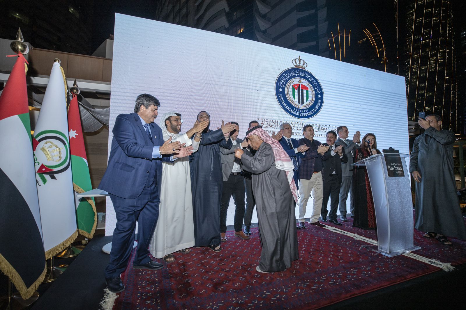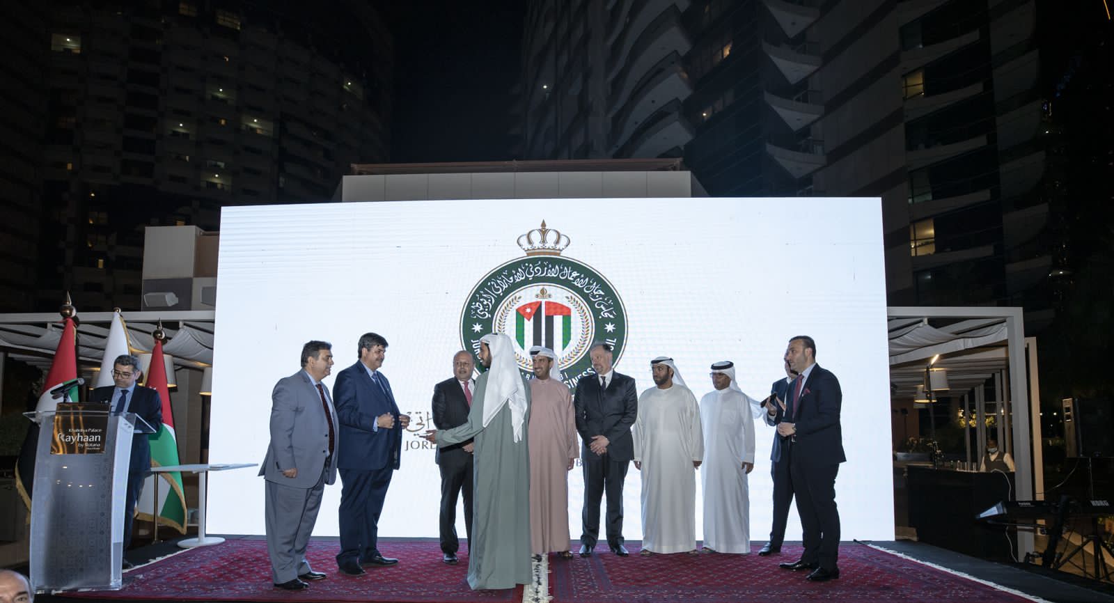 وقــام ســمو الشــيخ محمــد بــن خليفــه آل نهيــان بتكــريم كوكبــة مــن رجــال الأعمــال والمســتثمرين الأردنيــين الــذين ســاهموا فــي بنــاء الدولــة منــذ نشــأتها وشـكرهم علـى جهـودهم العظيمة التـي كـان لهـا الأثـر الكبيـر فيمـا وصـلت إليـه الدولة مــن تطــور فــي المجــالات التعليميّــة والعســكريّة والاقتصادية وغيرهــا.