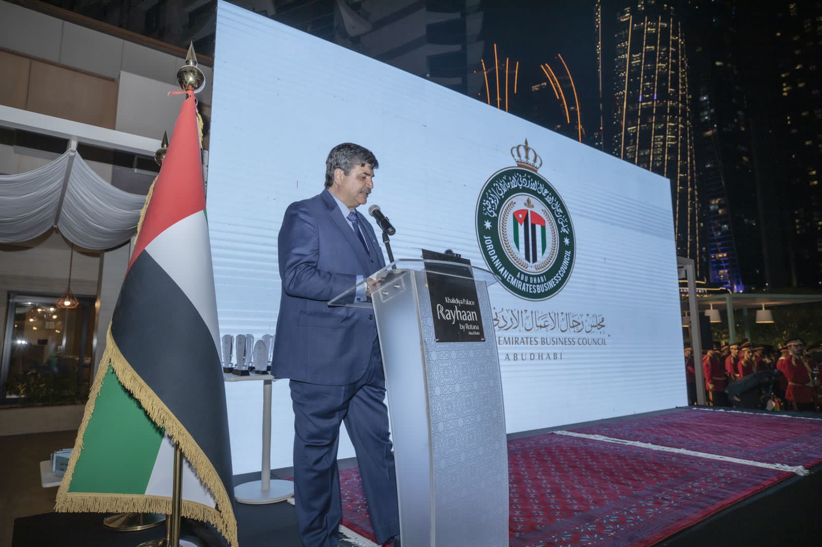 وقـــد تحـــدث الســـيد محمـــد صـــايل المعايطة رئـــيس مجلـــس رجـــال الأعمـــال الأردنــي الإمــاراتي عــن العلاقــات المتينة مــا بــين الــدولتين وعــن الإنجــازات الكبيرة التــي ســاهم فيهــا رجــال الأعمــال الأردنيــين وســاعدت فــي تطــور ونمــو اقتصــاد دولـــة الإمـــارات العربيـــة المتحـــدة وعبــر عــن فرحــة أبنــاء الجاليــة الأردنيــة بهــذه المناســبة الجليلــة والعزيــزة علــى قلــوب جميــع المقيمــين علــى أرض الإمارات الحبيبة.