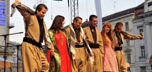 4. الموسيقى والرقص: الموسيقى والرقص تشكل جزءًا هامًا من التراث الكردي. يتم تنفيذ الرقصات التقليدية مثل الحه ته ولي دل وهاشمي حلبجة وكوردية كما تشتهر الموسيقى الكردية بآلاتها الموسيقية التقليدية مثل الساز والدف والبزق.