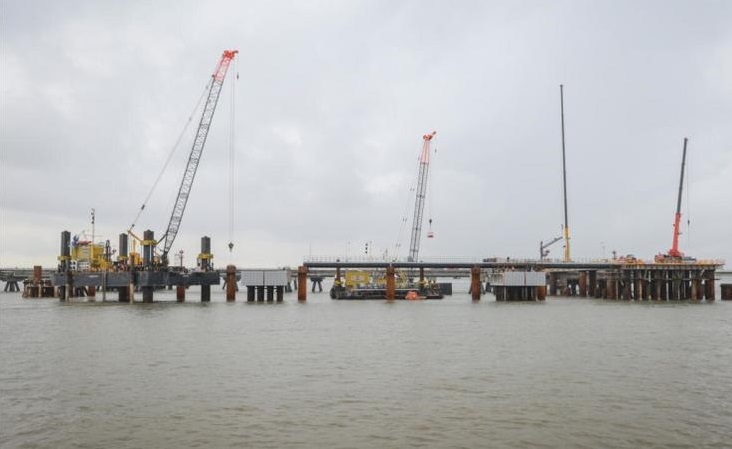 وبحسب وكالة الأنباء الألمانية (د ب أ)، فقد تم بناء خط أنابيب جديد بطول 26 كيلومترا في غضون بضعة أشهر، كما تم إنشاء رصيف جديد في منشأة مناولة قائمة بالفعل في شمال ميناء المياه العميقة (ياد-فيسر-بورت).