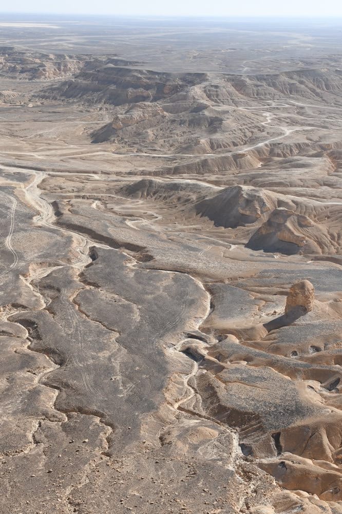 مشهد يثير دهشة كل من عليه، فالتضاريس وجيولوجيا المكان، جرداء ممتد نحو الأفق البعيد، والذي كان يمر بينها الراحلين، فبنظري يمكننا إعادة احيائها لدرب عشاق المسير والترحال وهواة قيادة سيارات الدفع الرباعي والدراجات، لا وبل نقطة استقطاب لتصوير الأفلام السينمائية في استوديو مفتوح، فالمكان مميز بجماله والذي حافظت الطبيعة على عذريتها فيه.