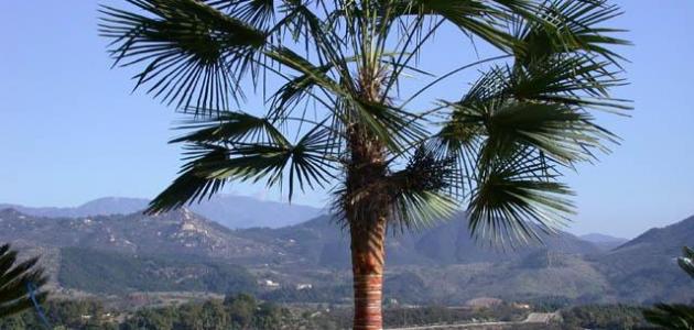 نخيل الواشنطونيا: يتميز بأنه نبات دائم الخضرة، وينمو عموديًا مع ساق طويلة وقاعدة منتفخة مغطاة بالأوراق. أوراقه مروحية الشكل ومتدلية من الأطراف، وزهوره تشكل عناقيد طويلة، وثماره صغيرة وسوداء اللون. يمتاز بجذور عميقة ومعدل نمو بطيء. يتحمل ظروفًا قاسية مثل الجفاف والحرارة العالية، ولكنه لا يتحمل الصقيع. يتكاثر بالبذور المنقوعة بالماء ويستخدم لأغراض الزينة في المنتزهات والطرقات.