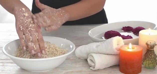 قم بمزج نصف كوب من دقيق الشوفان، وربع كوب من زيت الزيتون، ونصف كوب من السكر الأبيض أو البني (يمكن استخدام أي نوع منهما)، وبضع قطرات من الزيت العطري مثل زيت النعناع.