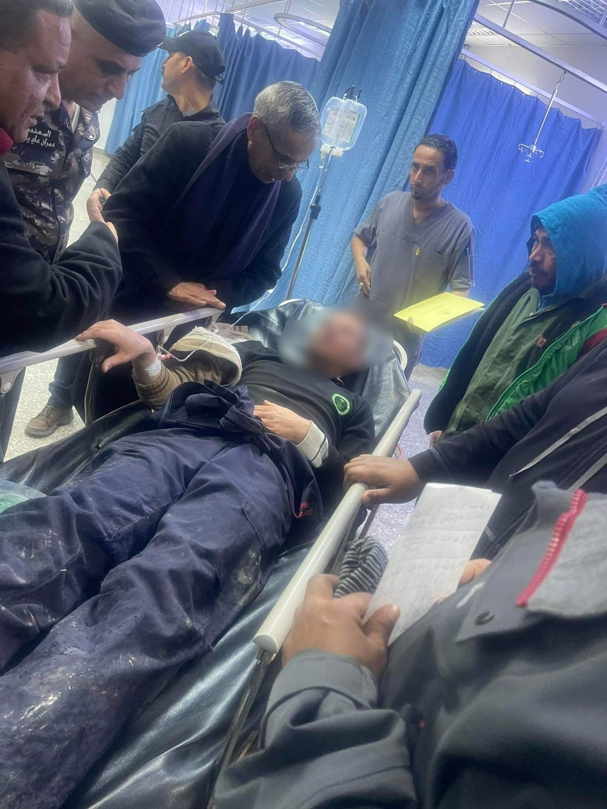 وزار النجادا المصابين في مستشفى البادية الشمالية الحكومي للاطمئنان على صحتهم وسرعة تقديم لهم العلاج المطلوب.