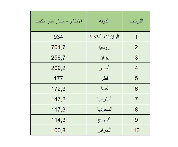 3 دول عربية بين أكبر 10 دول منتجة للغاز في العالم