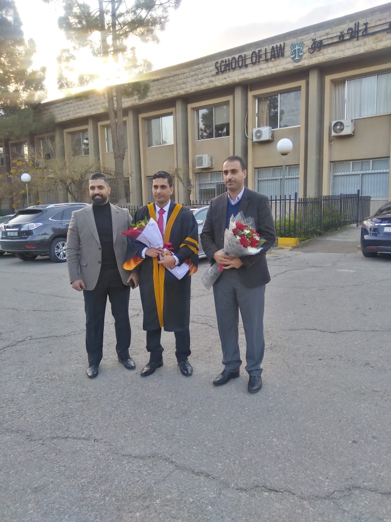 عمون - يتقدم حذيفة القضاة أبو سند بالتهنئة والتبريك إلى شقيقه الرائد ضياء بيك القضاة أبو كنان، بمناسبة حصوله على درجة الماجستير بالقانون الجنائي من الجامعة الأردنية وبتقدير امتياز مع أطيب الامنيات بالتوفيق دوما.
