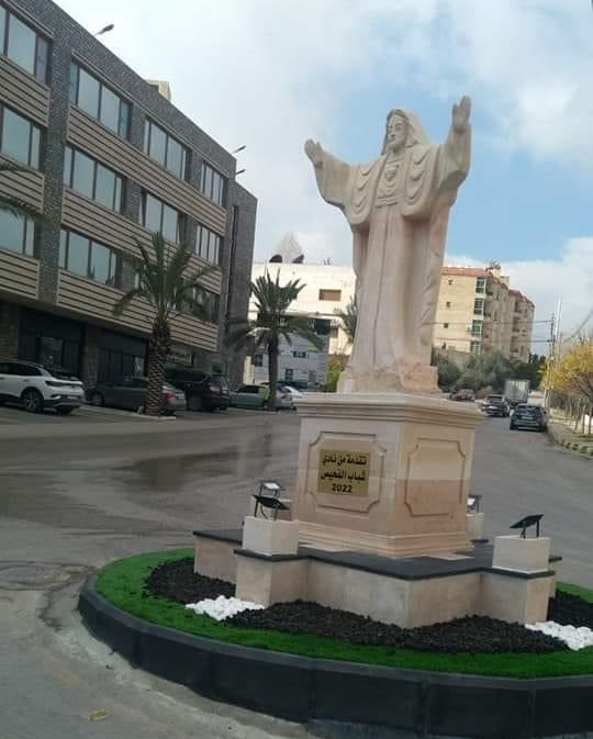 عمون - أثار تمثال يجسد السيد المسيح نبي الله عيسى عليه السلام، حفيظة ابناء المنطقة بعد وضعه مؤخرا في منطقة الفحيص.