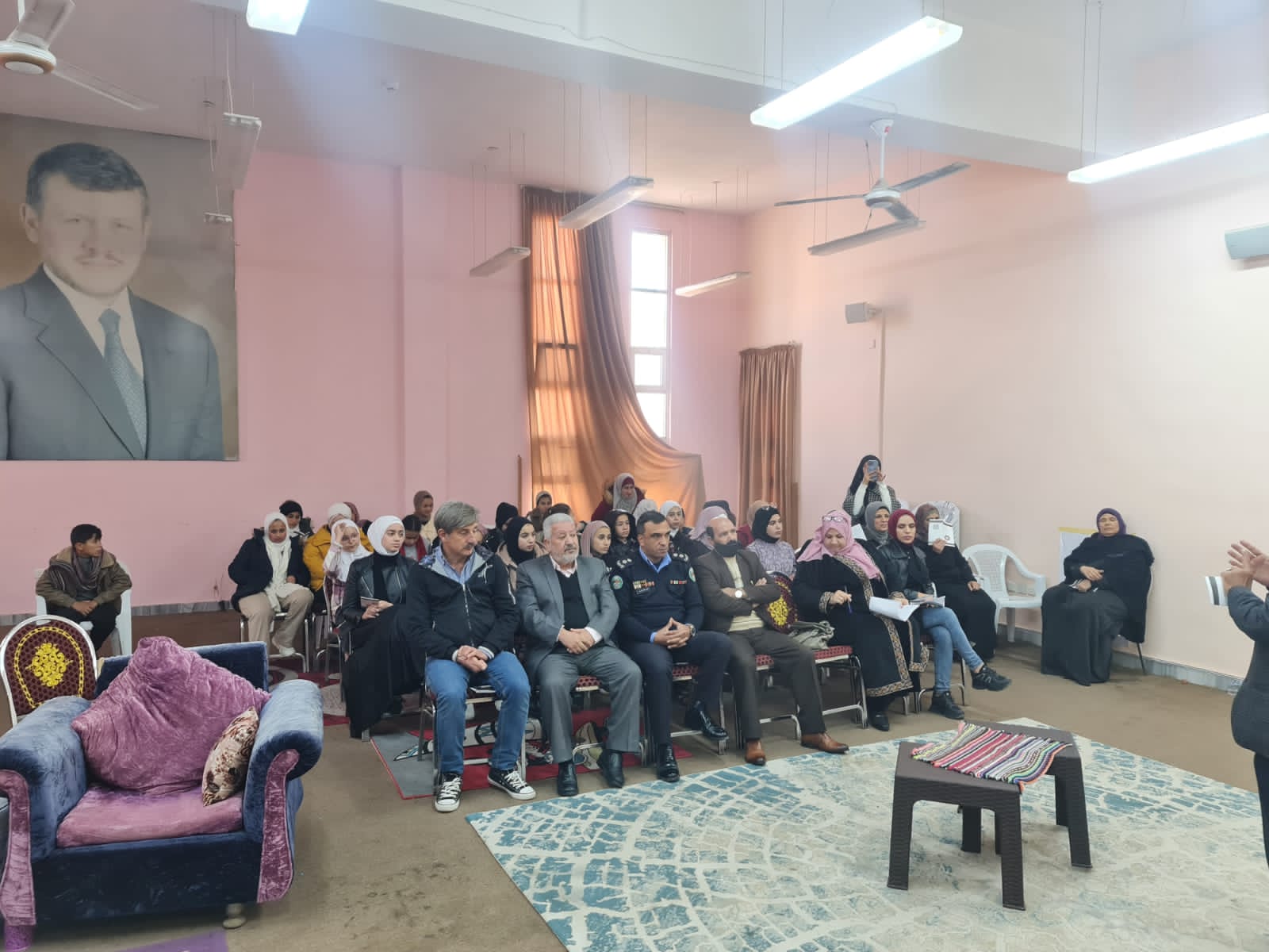 عمون - في اطار التعريف بجائزه الحسين بن عبدالله الثاني للعمل التطوعي اقامت مديرية شباب محافظة المفرق اليوم الأحد لقاء تعريفي بالجائزة في مركز شابات رحاب بحضور مدير شباب محافظة المفرق وعدد أهالي المنطقة وضابط الشرطة المجتمعية في المركز الأمني وعدد من الشابات. |