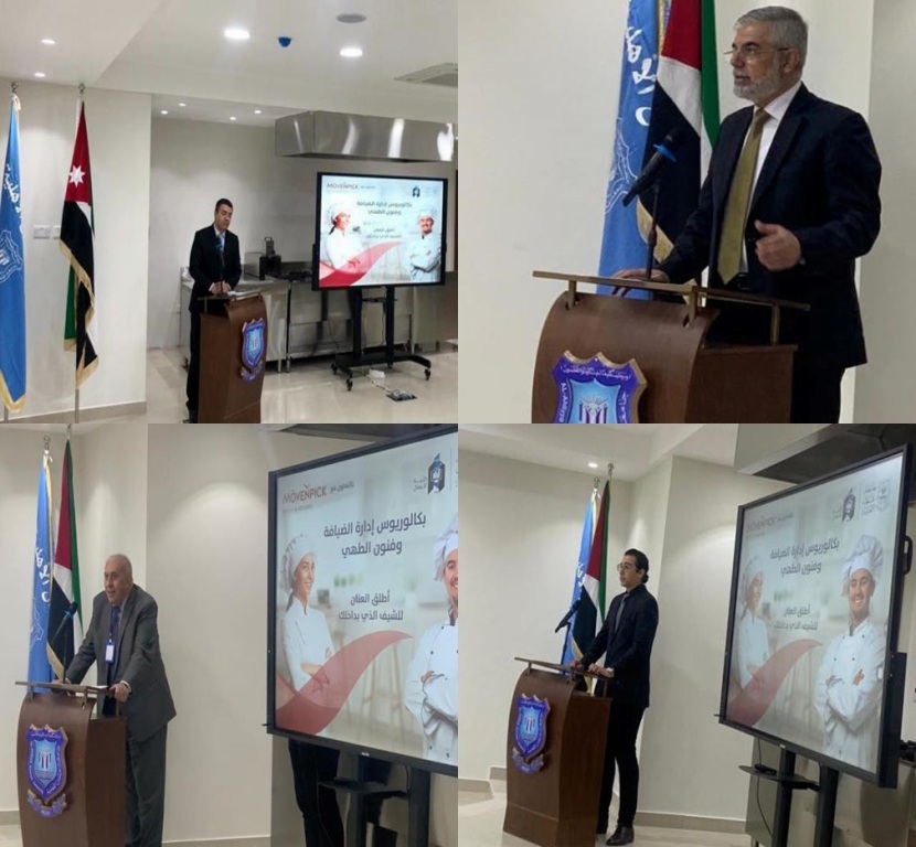 عمون - بحضور الأستاذ الدكتور ساري حمدان رئيس جامعة عنمان الاهلية والأستاذ الدكتور فايز حداد عميد كلية الأعمال في الجامعة والسيد أيمن رشيد مدير عام فندق موفنمبيك عمان ، وأعضاء الهيئة التدريسية في الكلية ، تم إطلاق أول حفل تدريبي لطلاب بكالوريوس إدارة الضيافة وفنون الطهي لمواد إدارة المناسبات وإجراءاتها ومادة مبادئ الطهي وخدمة الأغذية والمشروبات في مبنى التخصص ، حيث قام الطلاب بالتنظيم الكامل للحفل وتخلله عدة فعاليات من بينها جلسات تعريفية حول واقع قطاع السياحة في المملكة.