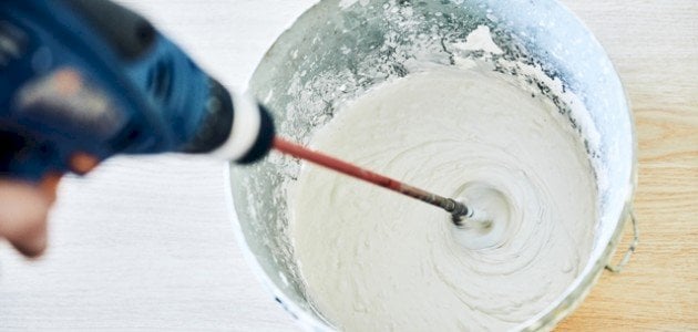 3. الخلط: قم بوضع الإسمنت الأبيض والرمل والحصى في خلاطة الخرسانة واخلطهم جيدًا. أضف الماء تدريجياً واستمر في الخلط حتى تحصل على خليط متجانس وسلس.