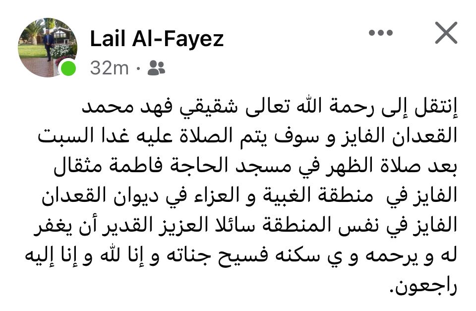 دفن الفقيد فهد الفايز السبت27-01-2023 11:36 AM