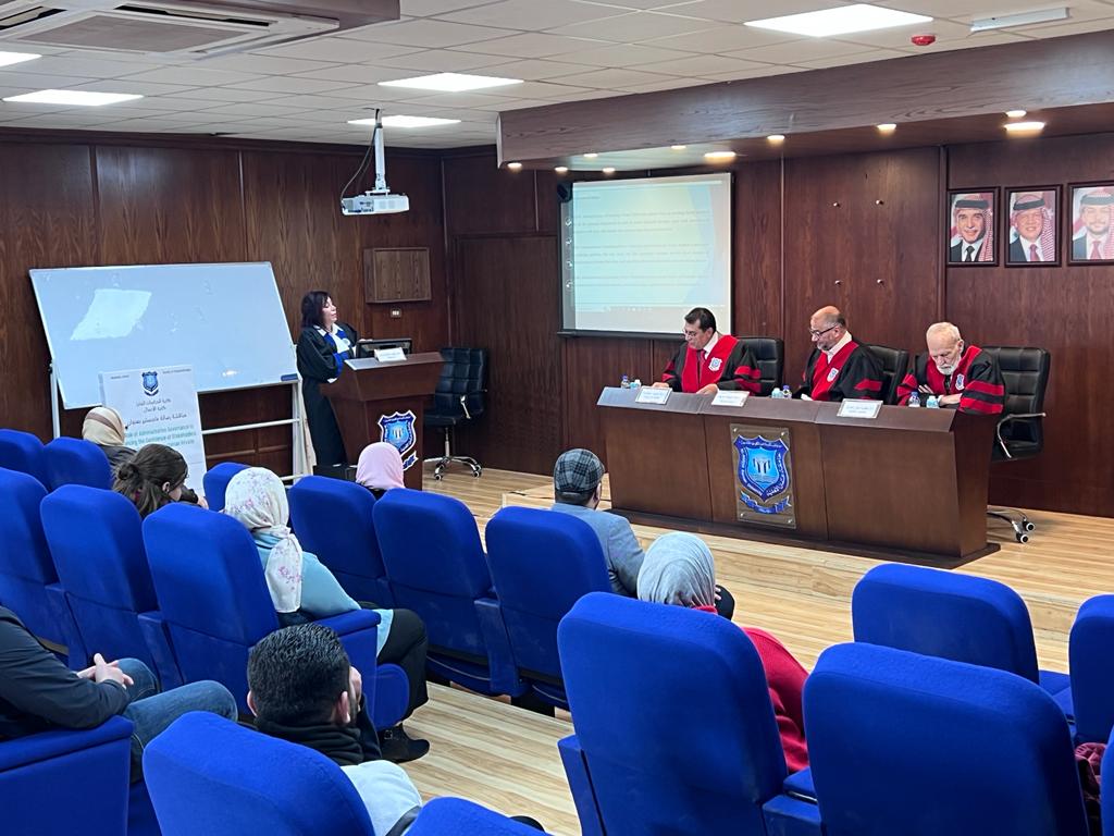 وتألفت لجنة المناقشة من الأستاذ الدكتور أحمد يوسف عريقات (قسم إدارة الاعمال) رئيساً ومشرفاً ، والأستاذ الدكتور يعقوب حيدر حمدان ( قسم إدارة الاعمال) عضواً داخلياً ، والدكتور إياد بشيرحياصات ( كلية الاعمال بجامعة البلقاء التطبيقية) عضواً خارجياً، وقد أجيزت رسالة الماجستير مع بعض التعديلات الطفيفة .