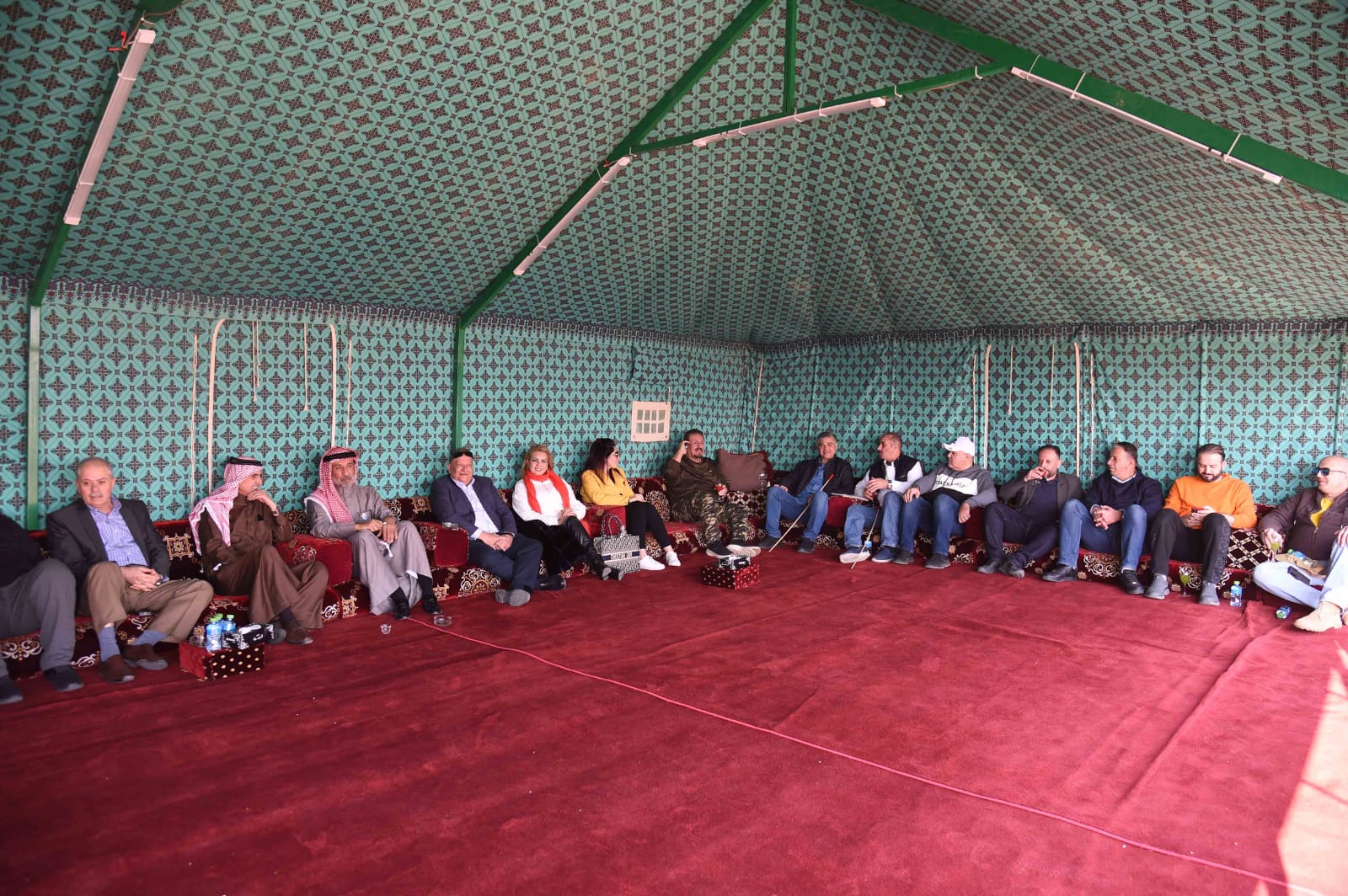 عمون - قامت لجنة ارتباط المهندسين الأردنيين بتلبية الدعوة الكريمة لرئيس الجالية الأردنية في الكويت السيد نبيل العبدالله على الغداء في مخيمه الكائن في منطقة الصبية وبرعاية سفير المملكة الأردنية في دولة الكويت سعادة السفير صقر ابو شتال وبحضور عدد من أبناء الجالية الأردنية وعدد من الصحف المحلية في أجواء رائعة تركت أثرها الإيجابي على الجميع.. |