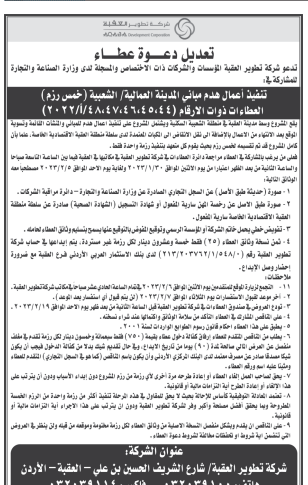 عطاء صادر عن شركة تطوير العقبة