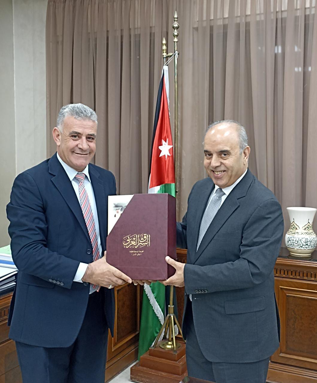 عمون - التقى مدير عام دائرة المكتبة الوطنية الأستاذ الدكتور نضال الأحمد العياصرة صباح اليوم الأحد، بوزير التربية والتعليم ووزير التعليم العالي والبحث العلمي الأستاذ الدكتور عزمي محمود محافظة في مبنى الوزارة.