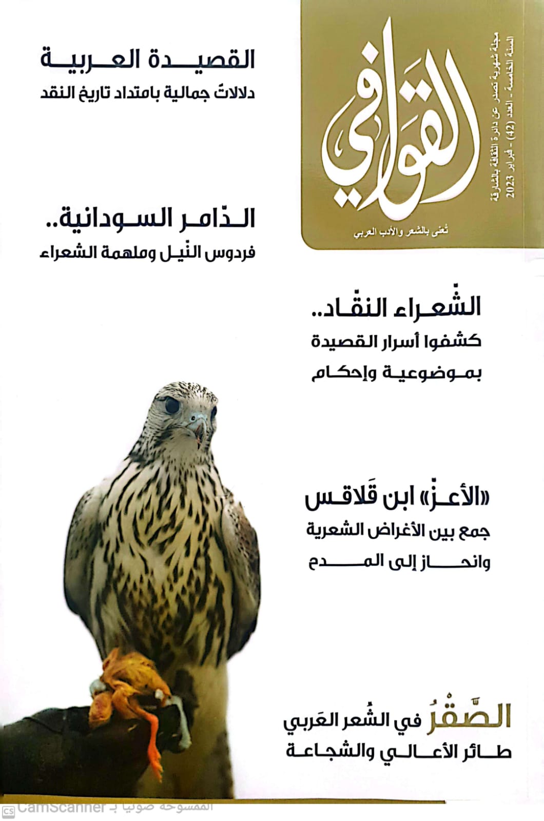 عمون - صدر عن بيت الشعر في دائرة الثقافة بالشارقة العدد 42 من مجلة "القوافي" الشهرية؛ المختصة بالشعر الفصيح ونقده، والتي تحتفي بالمواضيع ذات الصلة به بلاغة ولغة وتراثا. كما تحتفي بالشعراء من مختلف العصور.