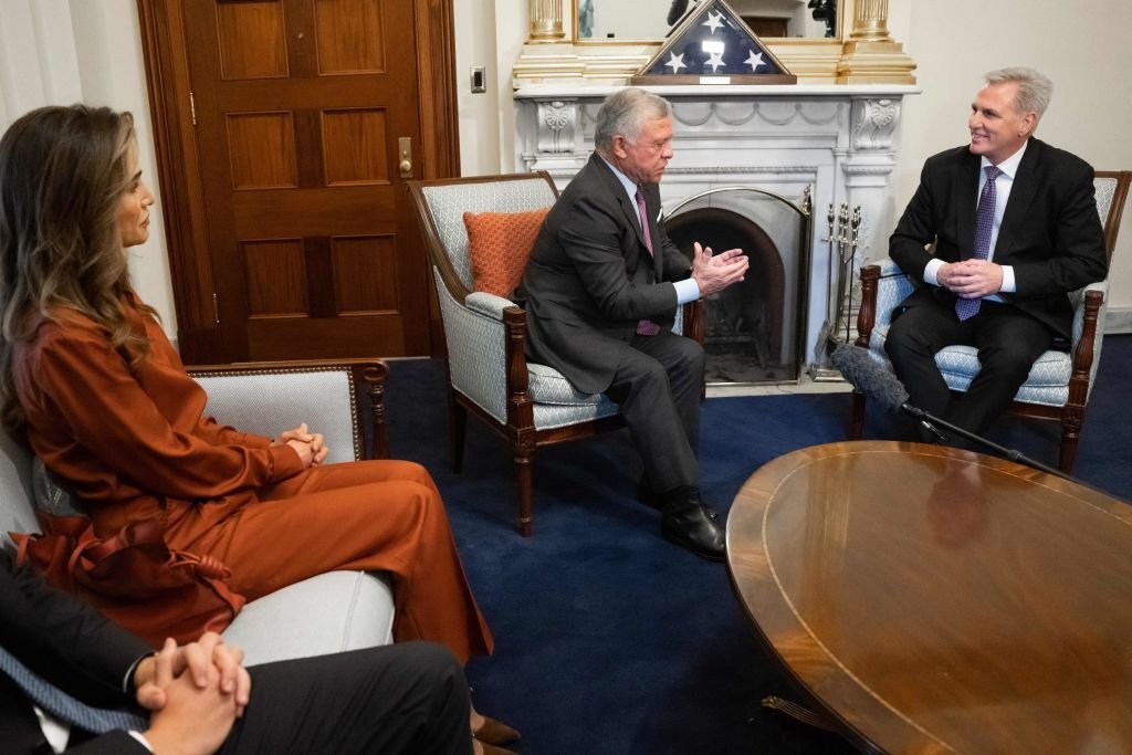 وهنأ جلالته خلال اللقاء الثنائي، الذي حضرته جلالة الملكة رانيا العبدالله وسمو الأمير الحسين بن عبدالله الثاني ولي العهد، رئيس مجلس النواب مكارثي بمناسبة انتخابه، معبرا عن تقدير الأردن للدعم المتواصل من قبل الولايات المتحدة والكونغرس الأميركي.
