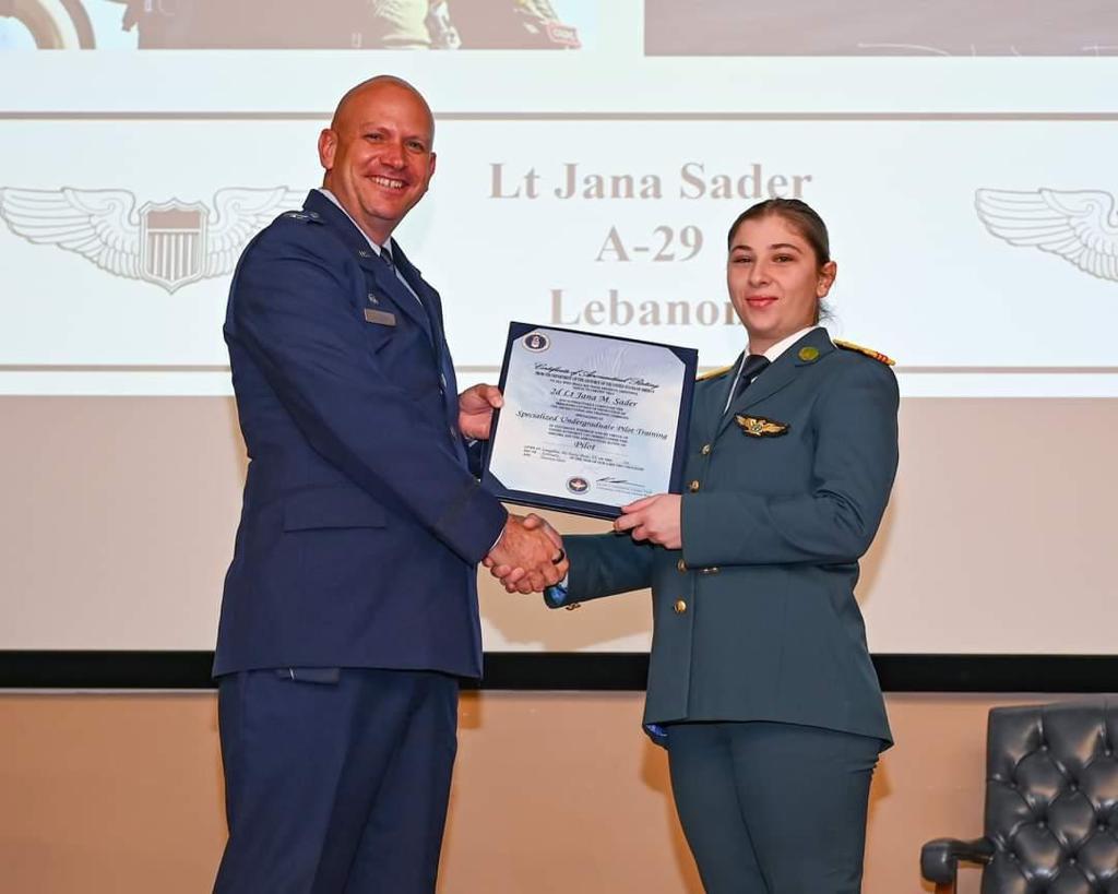عمون - نشر موقع الجيش اللبناني تغريدة عبر تويتر قال فيها: "تخرّجت التلميذ الضابط جنى صادر من الجيش اللبناني من Laughlin Air Force Base، في ولاية Texas الأميركية، بعدما تابعت دورة لمدة سنتين تقريباً، لتكون أوّل امرأة في الجيش تبدأ مسيرتها المهنية بطائرة القتال الهجومية سوبر توكانو A-29. |