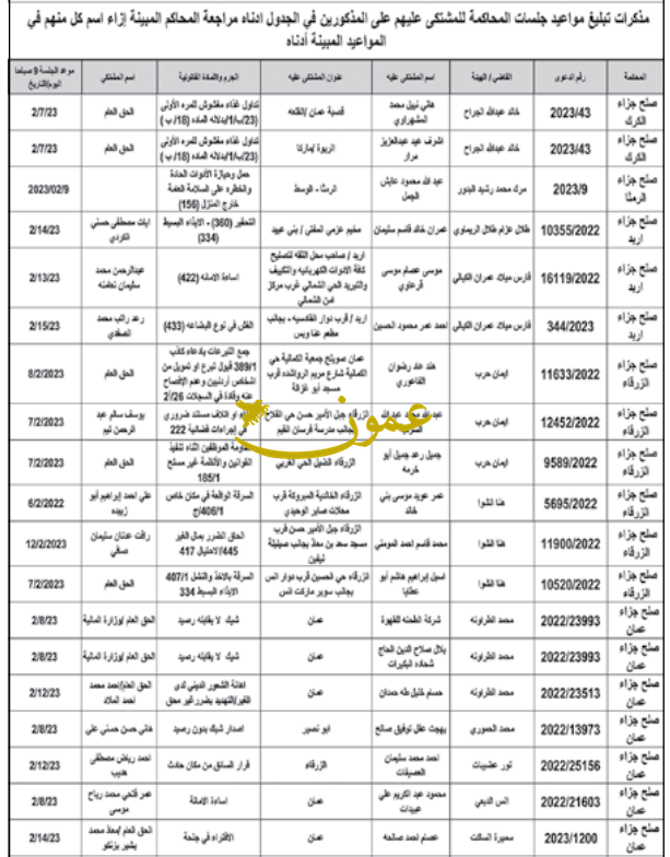 كما طالبت مذكرات أخرى، من المشتكى عليهم مراجعة المحاكم المبينة إزاء اسم كل منهم في المواعيد المبينة.