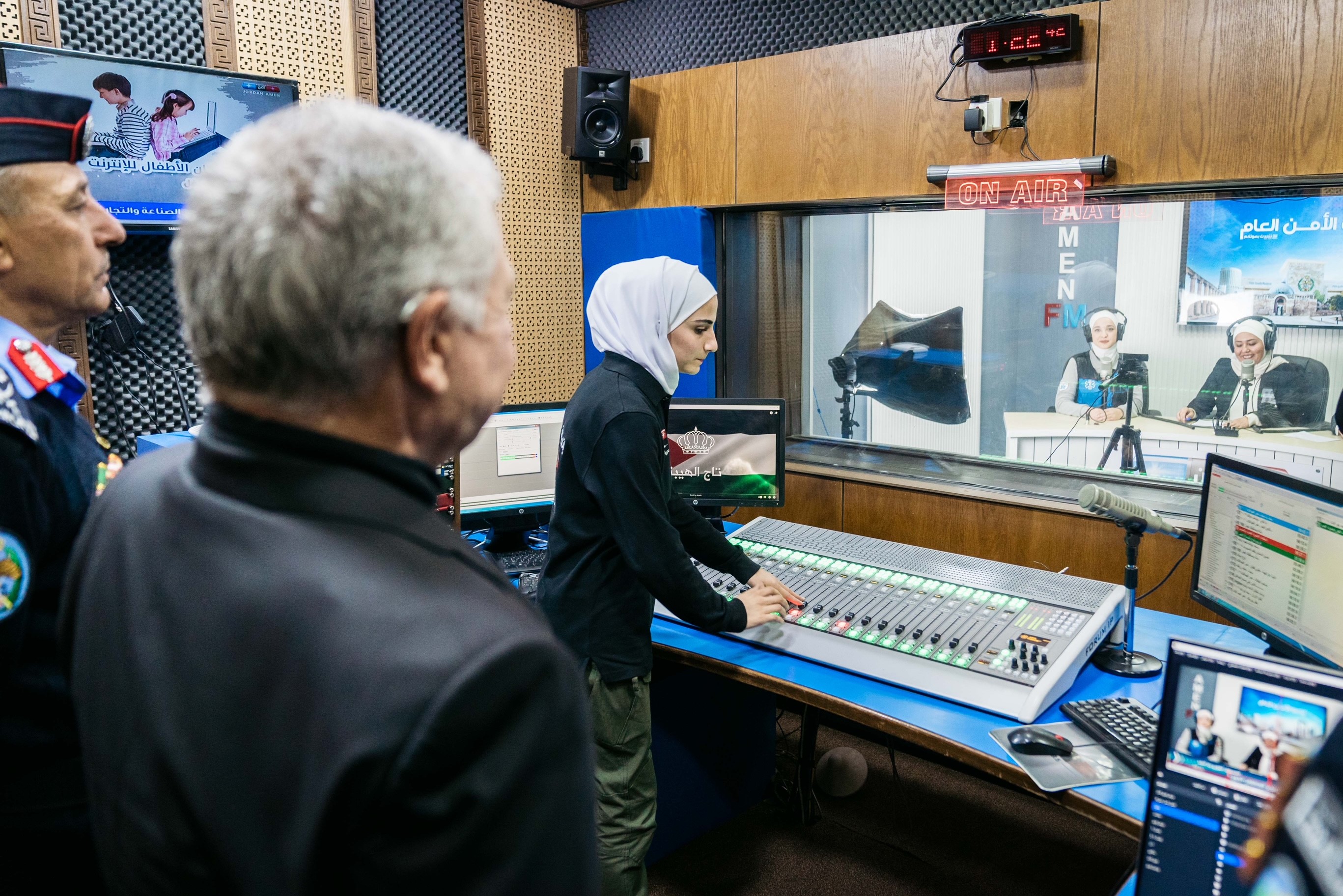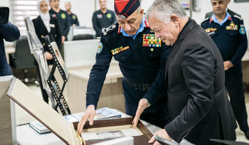 كما افتتح جلالته، خلال الزيارة، استوديوهات إذاعة الأمن العام الجديدة، إذ استمع إلى إيجاز حول أهم الخطط الإعلامية التي تضطلع بها مديرية الأمن العام من خلال حملات التوعية وتقديم المعلومات للمواطنين.