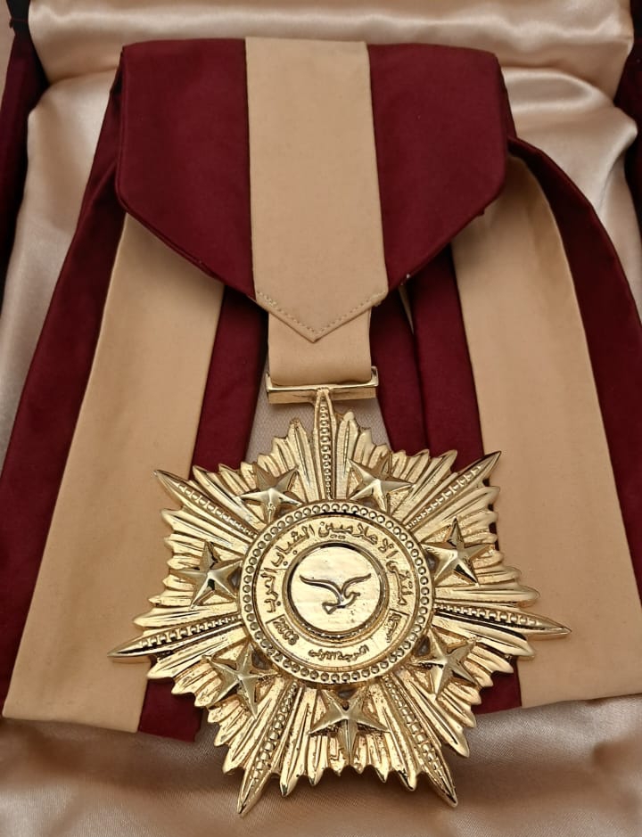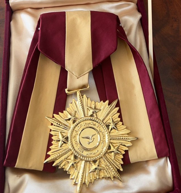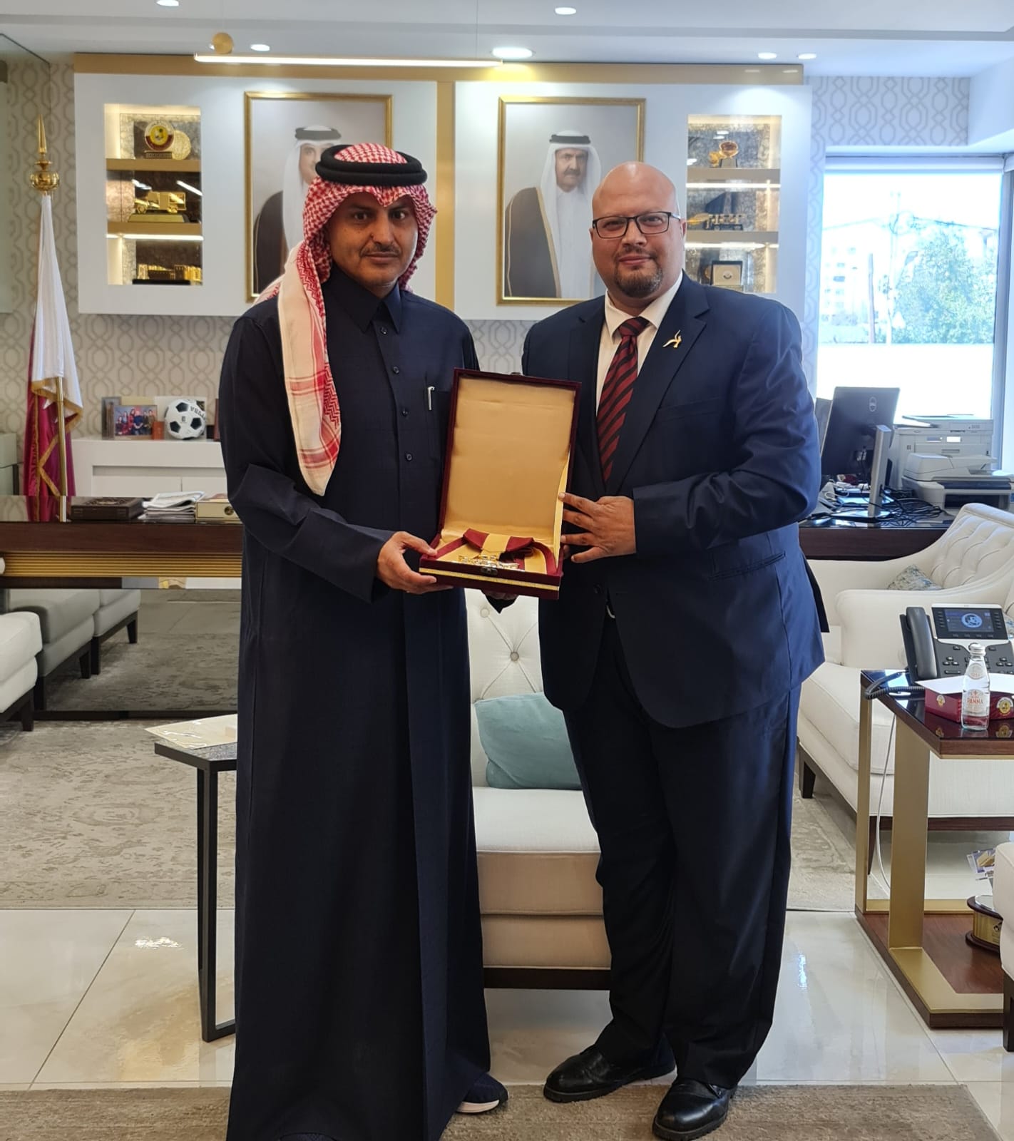 عمون - مندوباً عن أمير دولة قطر الشيخ تميم بن حمد آل ثاني، تسلم سفير دولة قطر في عمّان الشيخ سعود بن ناصر بن جاسم آل ثاني، القلادة الذهبية من الدرجة الخاصة، تقديراً لجهود سموه وتوجيهاته الحكيمة التي أدّت إلى النجاح الباهر في تنظيم بطولة كأس العالم 2022 .