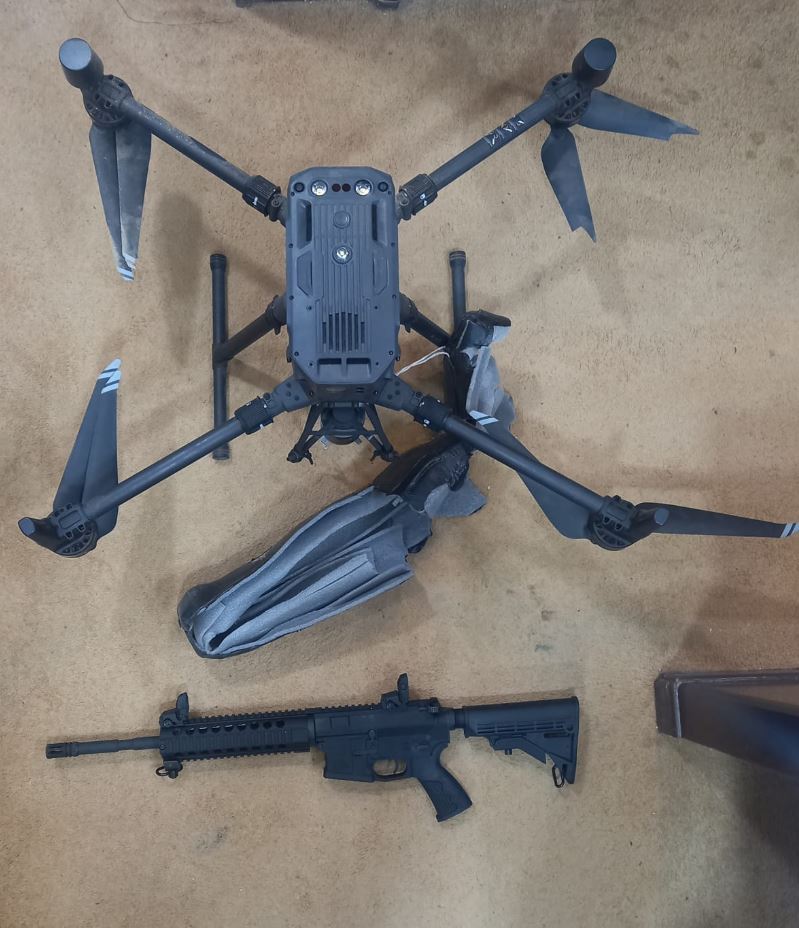 وبين المصدر أنه بعد تكثيف عمليات البحث والتفتيش للمنطقة تم العثور على بندقية M4 عدد (١)، و (٤) قنابل يدوية وتبين أنه تم إعداد الطائرة المسيرة بطريقة مفخخة في حال تم ضبطها من قبل عناصر حرس الحدود، وقام فريق هندسي مختص بالتعامل معها والتحفظ عليها، وتحويل المضبوطات إلى الجهات المختصة.
