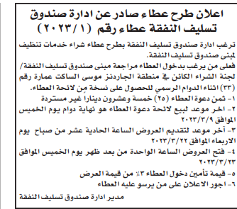 مطلوب شراء خدمات التنظيف لمبنى صندوق تسليف النفقة