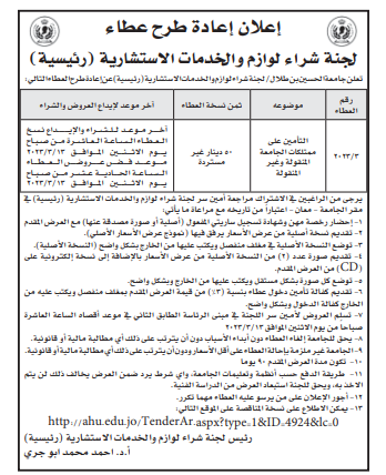 مطلوب التأمين على ممتلكات جامعة الحسين بن طلال