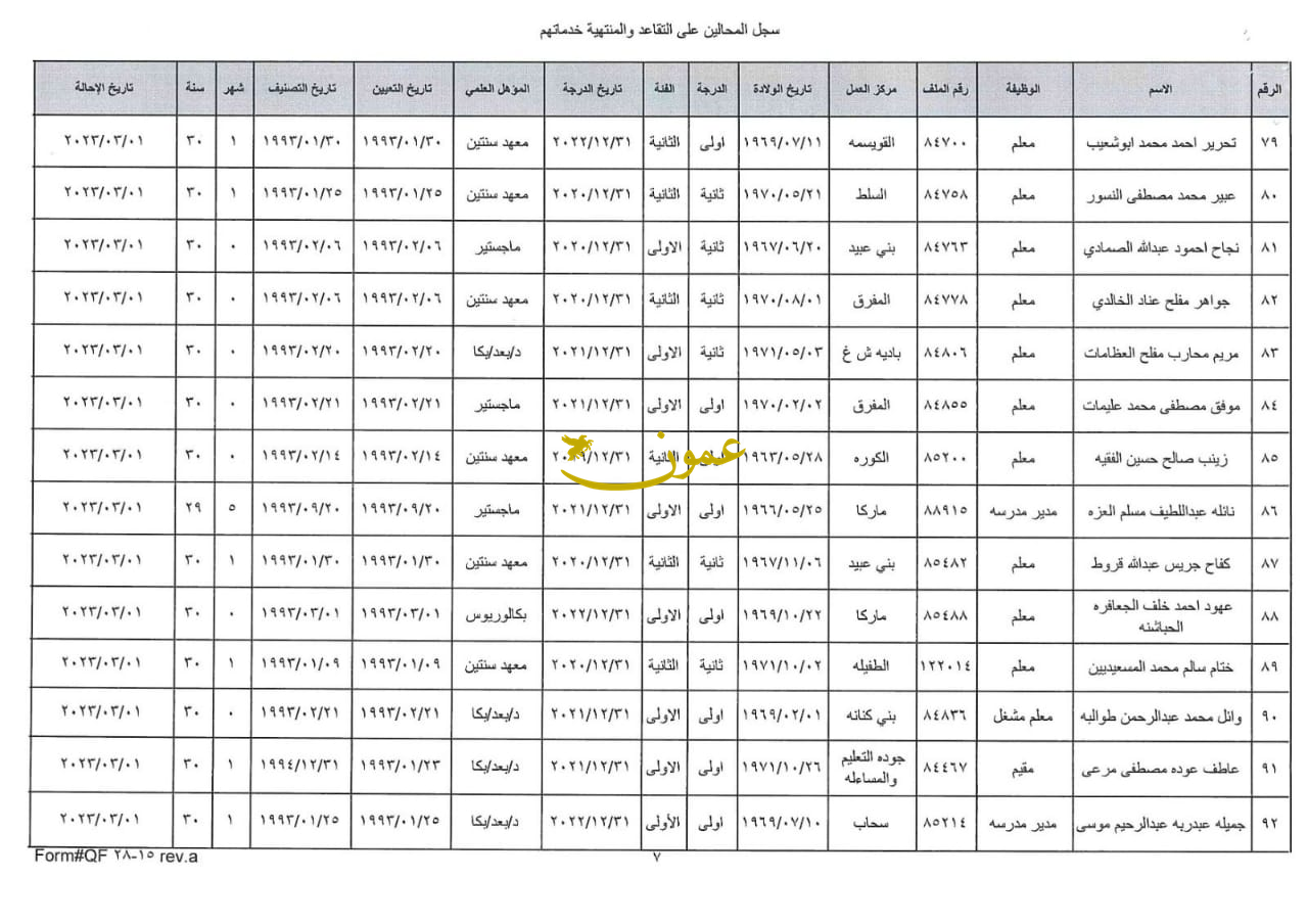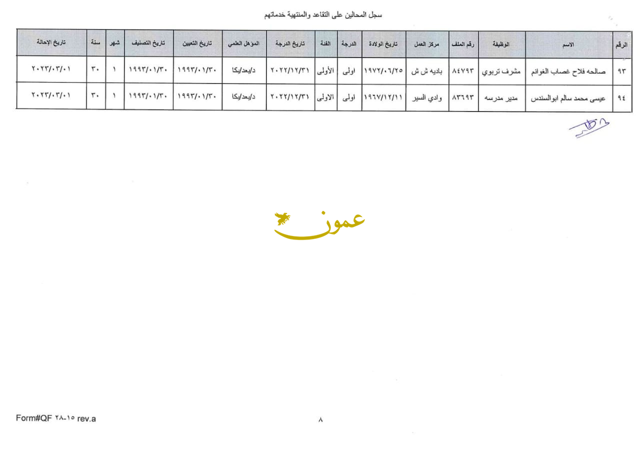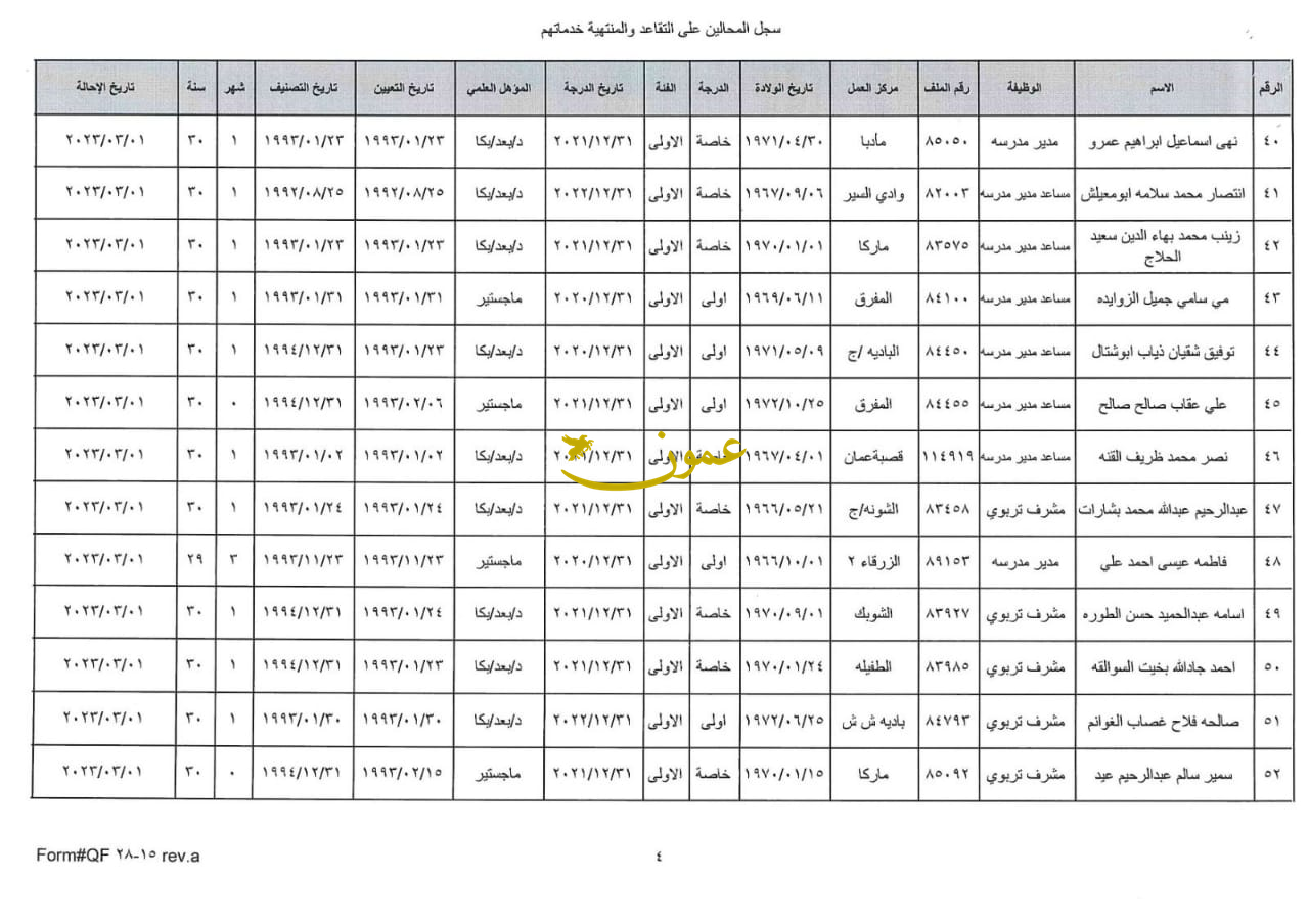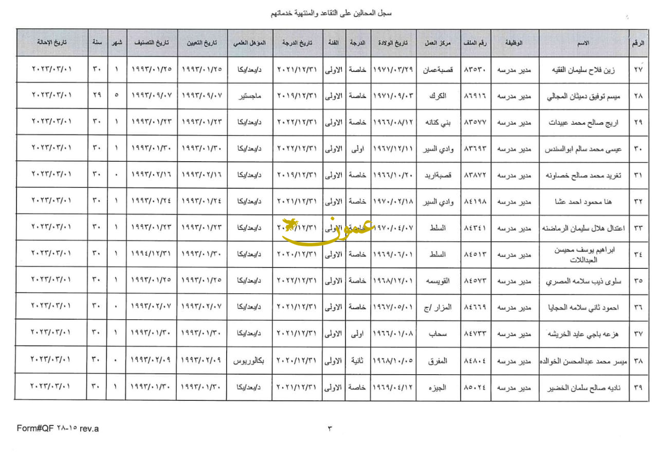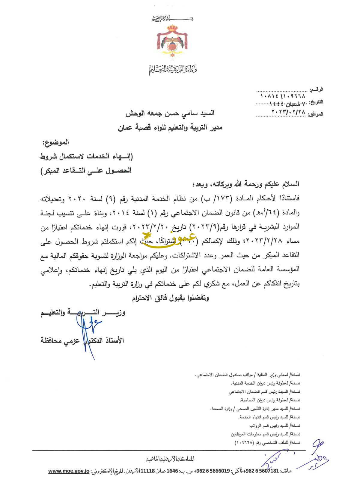 عمون - قرر مجلس الوزراء مؤخرا الموافقة على إحالة عدد من المدراء في وزارة التربية والتعليم إلى التقاعد.
