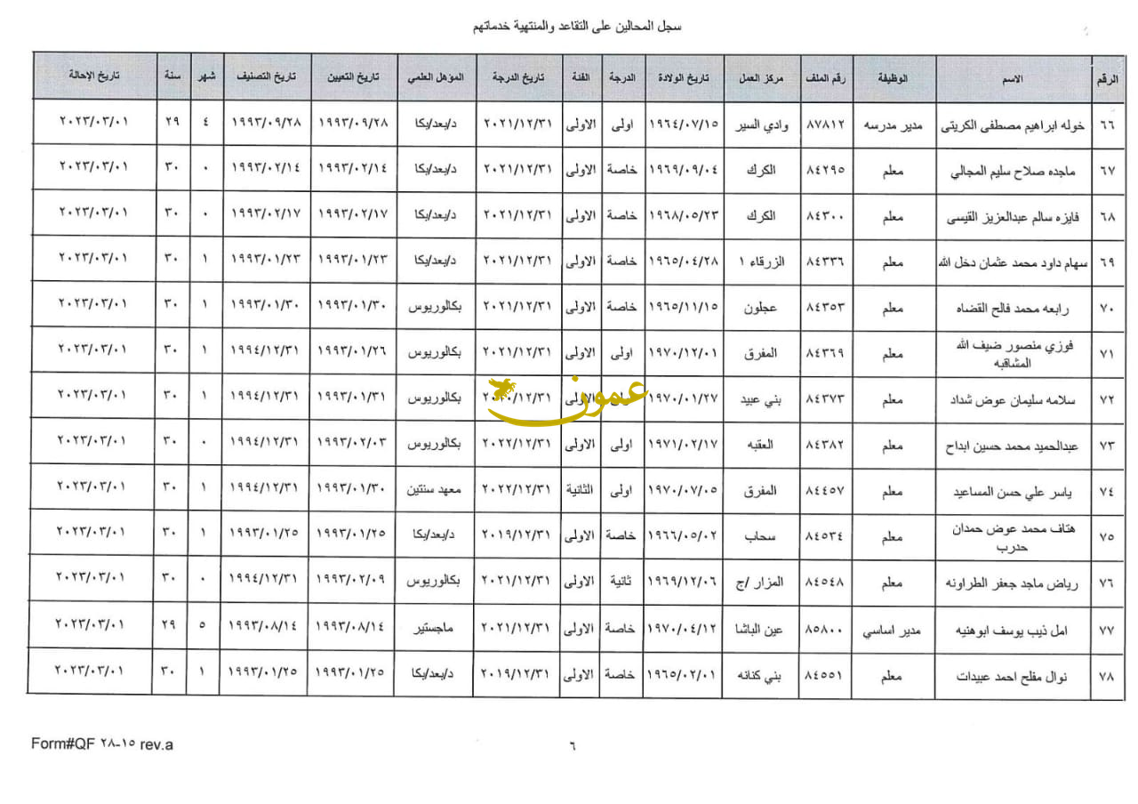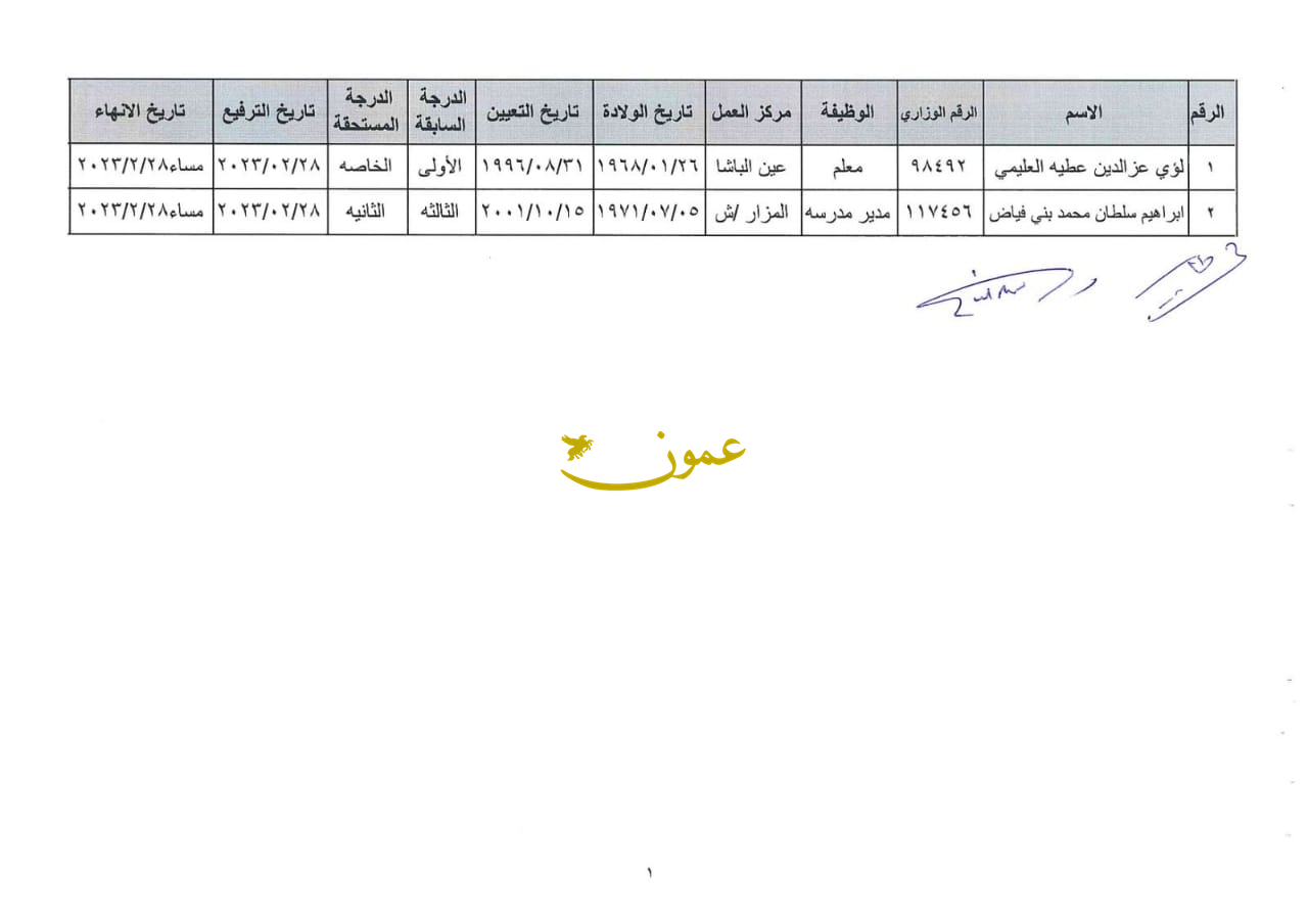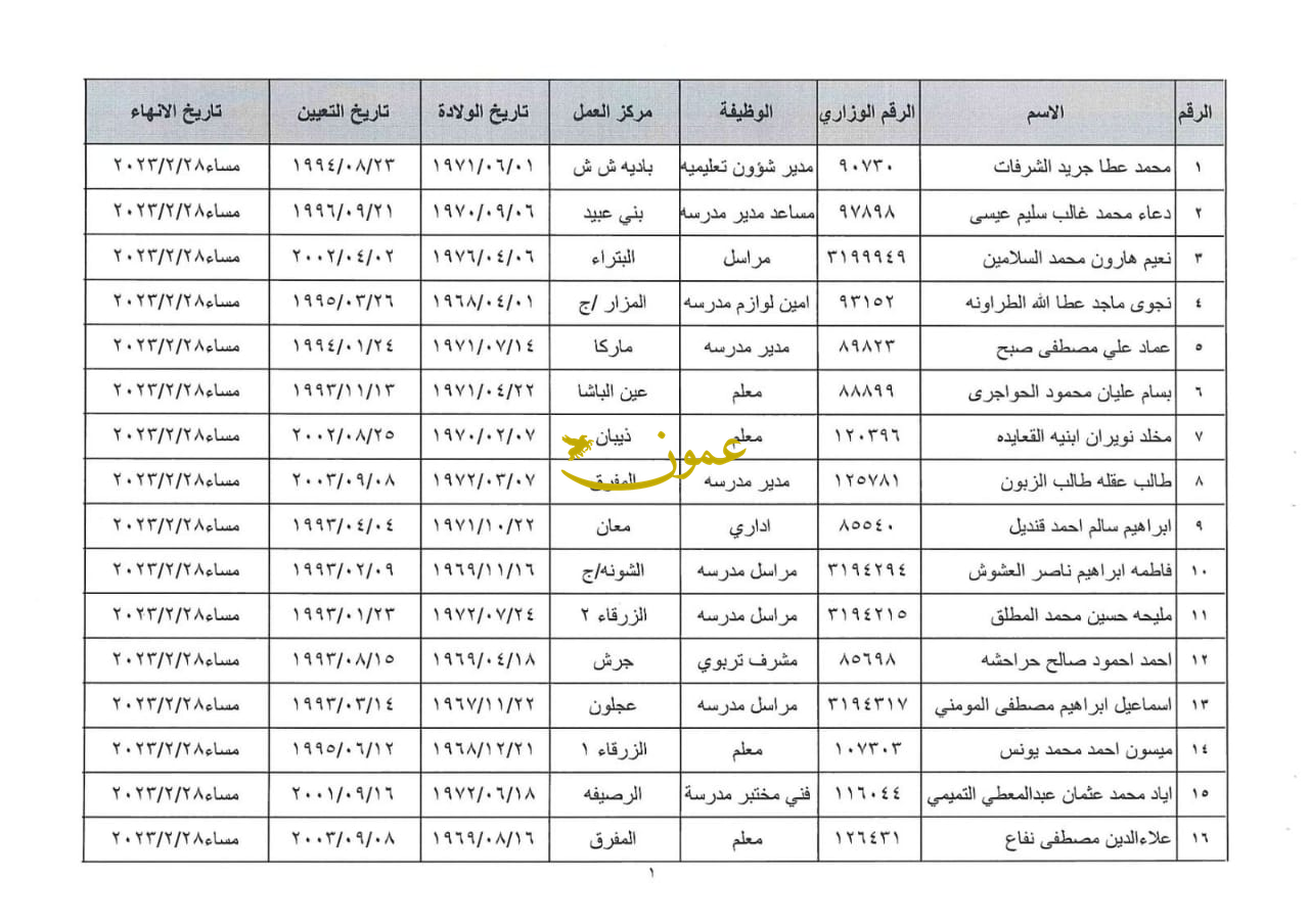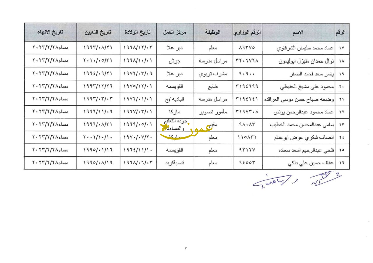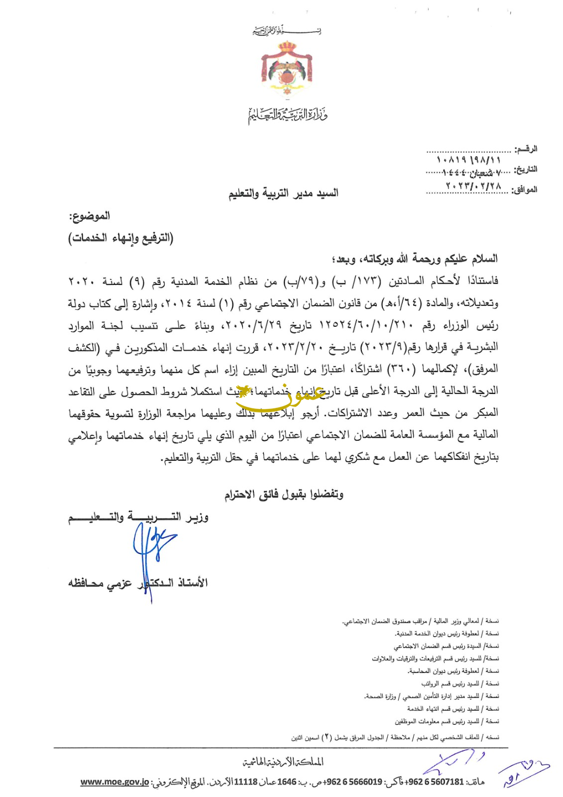 كما قرر وزير التربية والتعليم الدكتور عزمي محافظة ترفيع موظفين اخرين وانهاء خدماتهم.